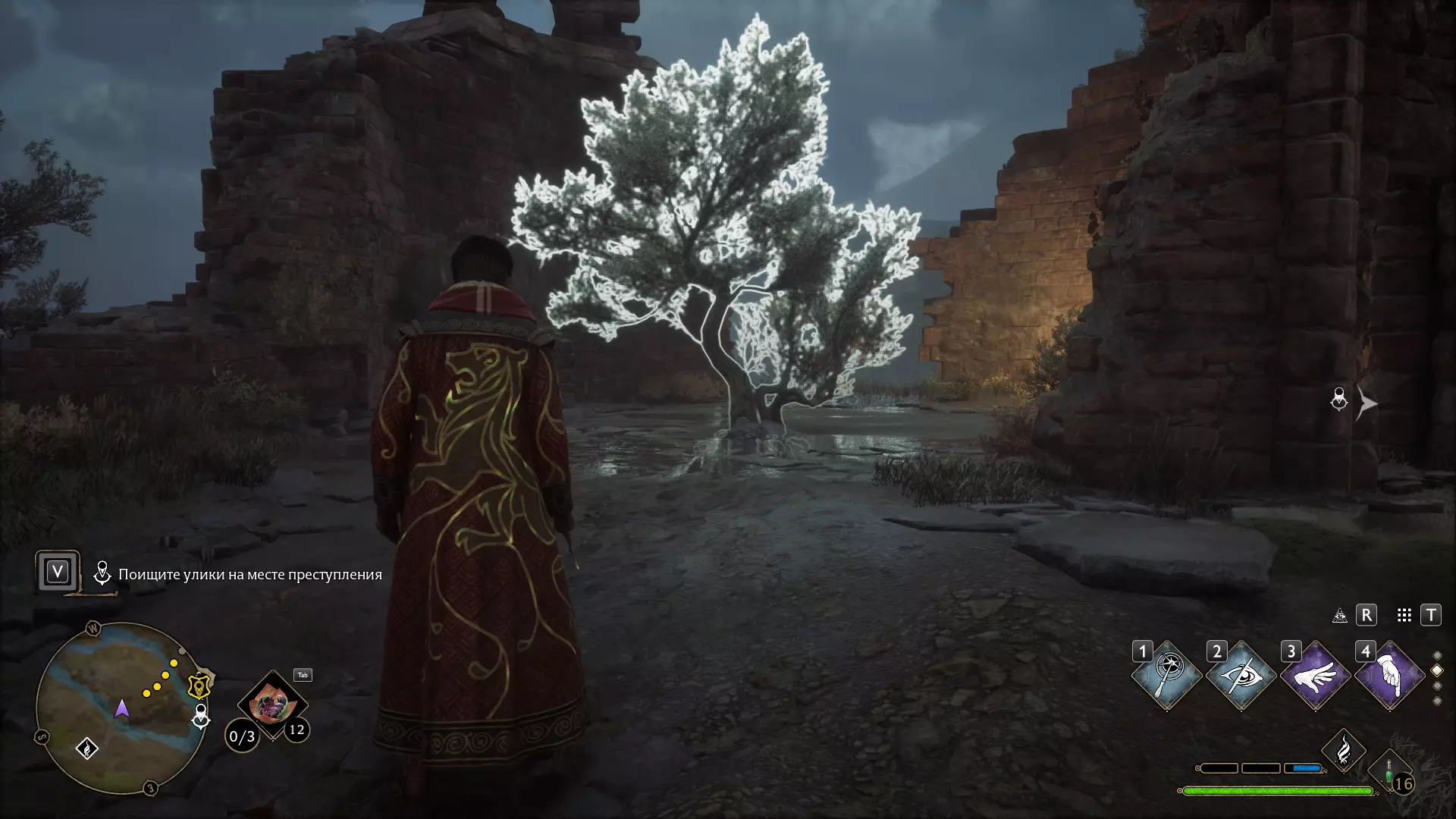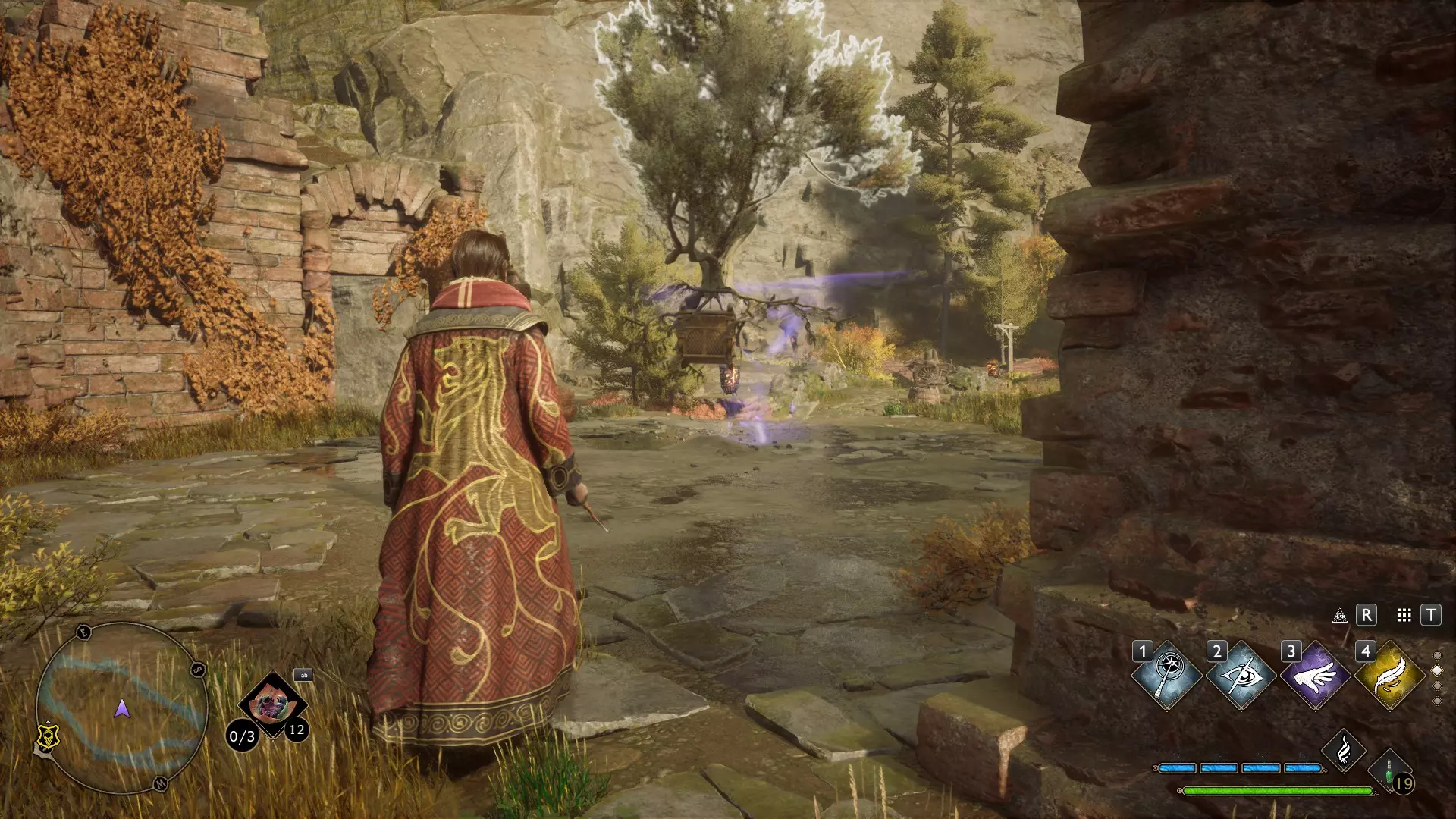 前往南方的废墟,在那里可以找到一棵在靠近时会高亮显示的树。