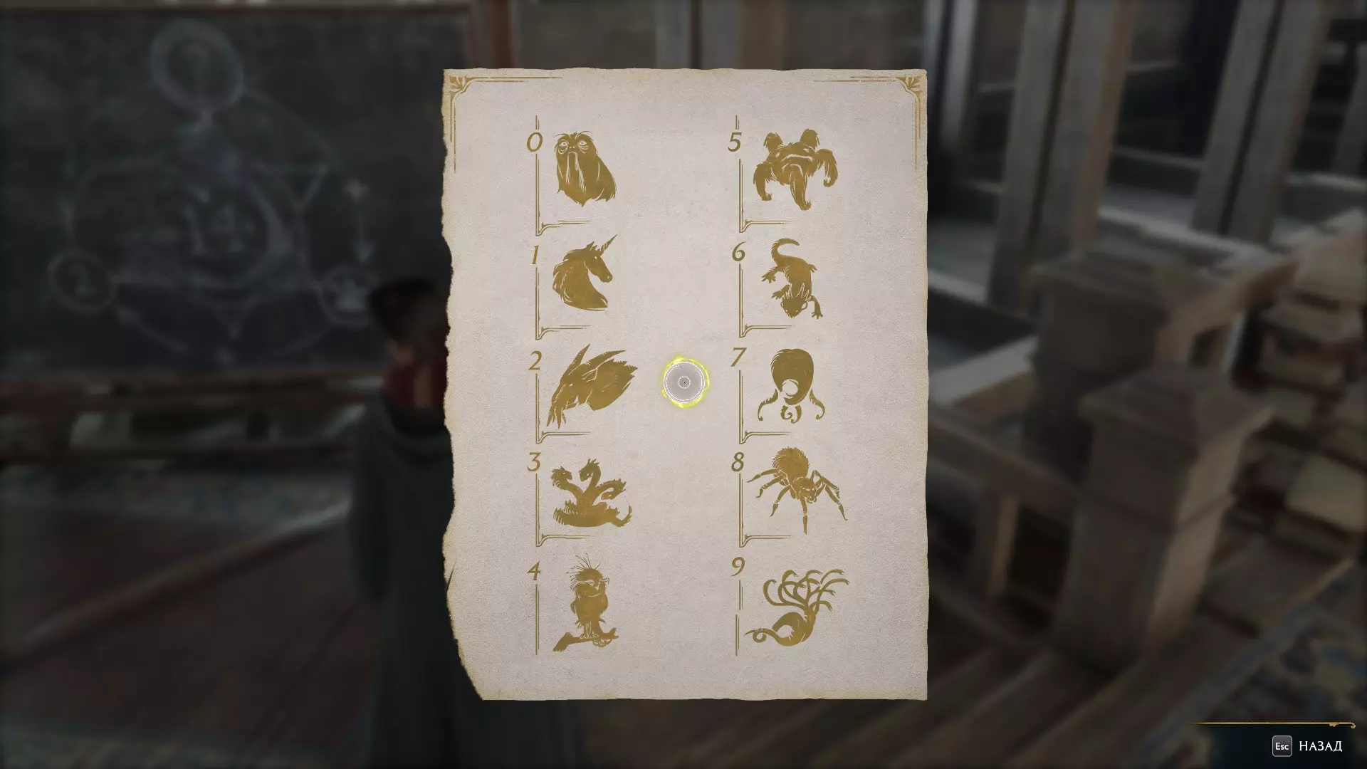 半面具 - 0; 独角兽 - 1; 凯尔派 - 2; 九头蛇 - 3; 菲武佩尔 - 4; 五足怪 - 5; 伊沙卡 - 6; 玛尔米特 - 7; 八眼巨蛛 - 8; 巨型鱿鱼 - 9。 解谜非常简单。举个例子: