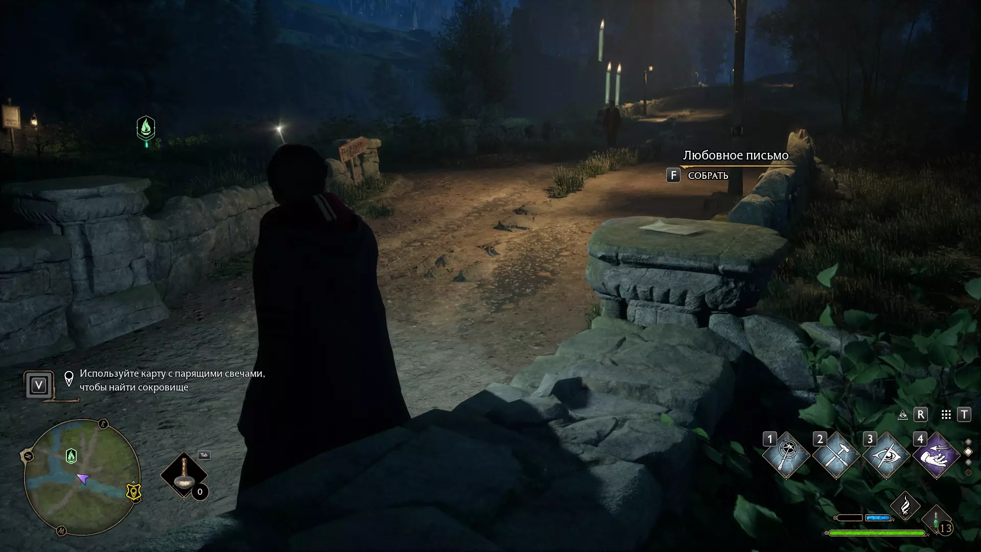 附近有一座石桥。使用荧光闪烁咒,从传送门走向石桥。会出现信件和蜡烛。拿起信件,然后去寻找蜡烛。最后会有奖励。