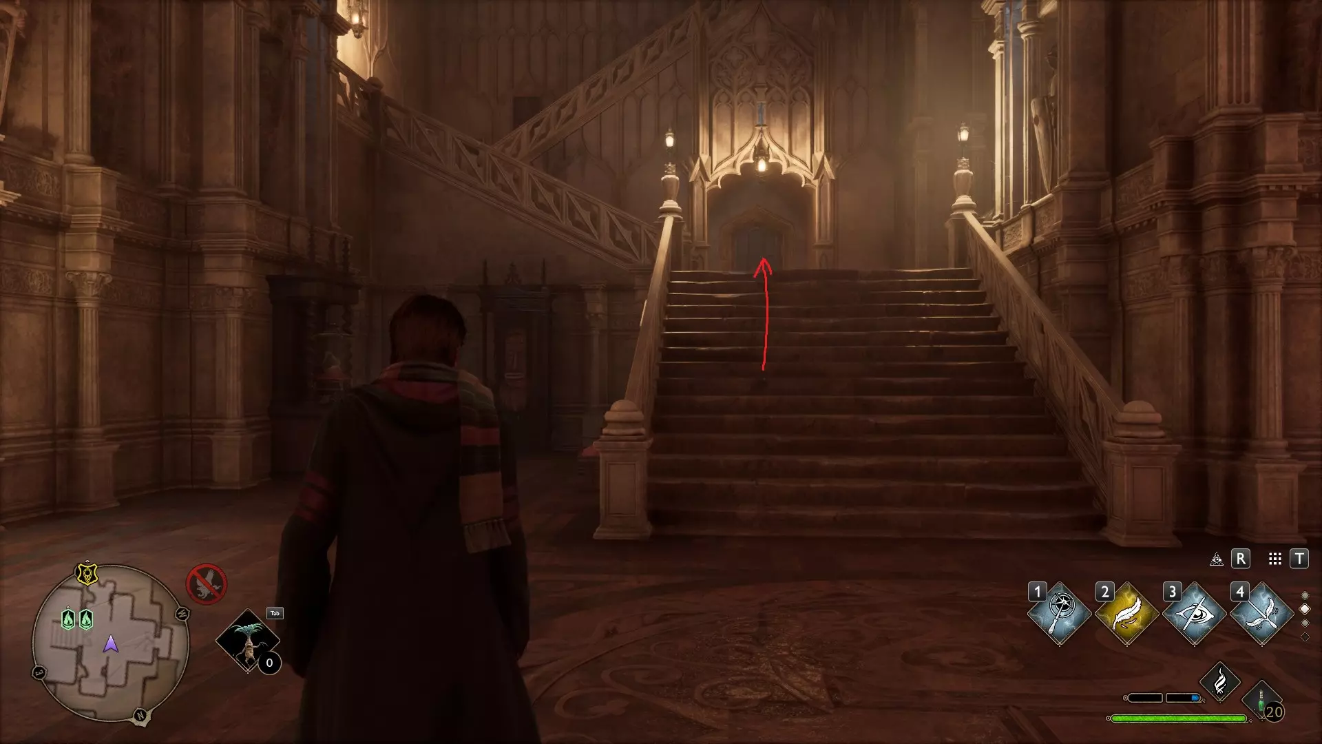 但这还不是全部。稍后,当你学会阿拉霍洞开(Alohomora)咒语后,可以在同一个大厅里打开门并前往更高层。每层楼都有和一开始相同的门机制。