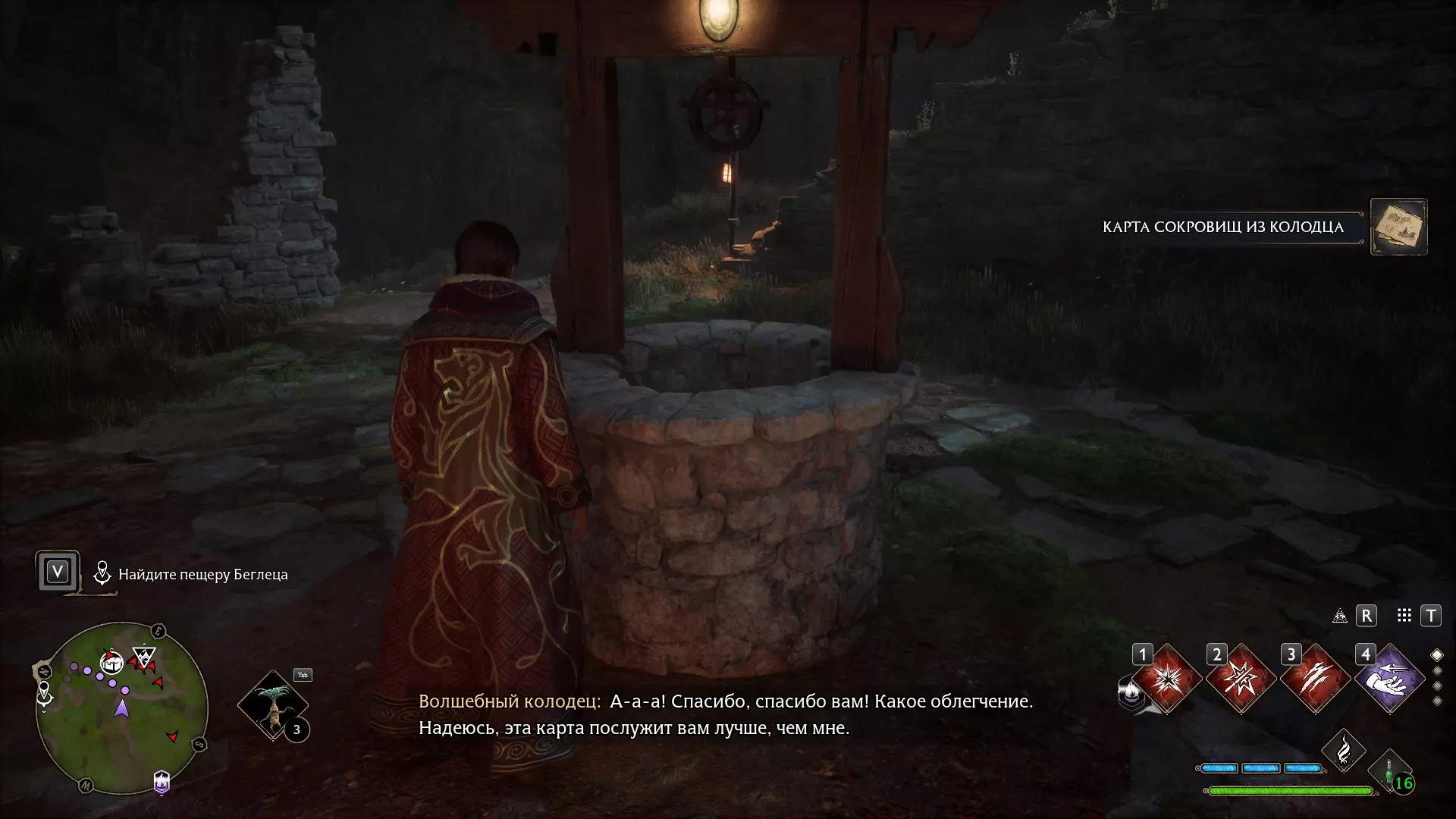 宝藏地图来自水井 在霍格沃茨的东边,你可以找到一口水井。这口井不普通,它会说话。 它请求你从井里取出被扔进井里的纸片。当你取出来后,会触发“水井、水井与宝藏地图”任务。
