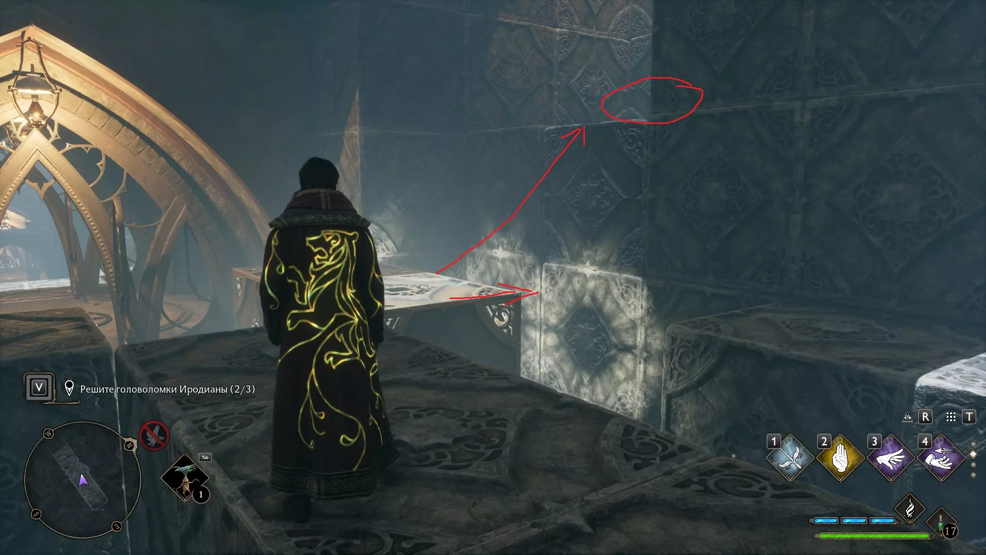 我们会获得学院代币作为奖励。但这并非最终奖励。要获得最终奖励,需要在整个霍格沃茨收集16个代币,并将它们交到自己学院的特殊箱子处。注意!没有【阿拉霍洞开】咒语,就无法收集全部16个代币,因为有些代币位于紧闭的门后。在那里你将获得应得的奖励——自己学院的古老校服!桥上的谜题 谜题所在的桥位于高架桥入口附近。