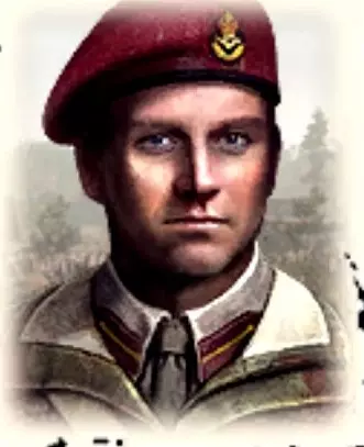 英国空降军官是突击支援单位。为玩家提供了良好的近距离战斗能力和武器装备。 优点: 可以投掷手榴弹 可以呼叫空中侦察 拥有“果断攻击”能力:提升所选部队的精准度和速度,对自身无效 缺点: 仅适用于激进的游戏风格无防御技能 无烟雾弹 射击测试: 使用4把标准冲锋枪无法击败任何突击小队。装甲掷弹兵可能获胜。在近战中,除突击小队外的所有小队均可获胜。在近距离能击败国防军炮兵军官和党卫军突击军官。在近距离击败国民掷弹兵。 配备2挺布伦轻机枪后,在中等距离对许多小队会变得有效。