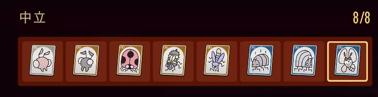中立 1.红工蚁 2.黑工蚁 3.瓢虫 4.蜜蜂 5.萤火虫 6.生病西瓜虫 7.西瓜虫 8.飞蛾 生病西瓜虫可在餐桌左边的草地或垃圾堆附近右边的草地找到。飞蛾可在上层草地右边的路灯上找到,旁边的植物可以跳上去;也可在打boss的城堡顶部找到;白天时,右边城堡的MIX.R机器附近也有。若实在找不到,可去木桩实验室的箱子里拿到飞蛾部件,再用资源扫描器寻找会容易很多。