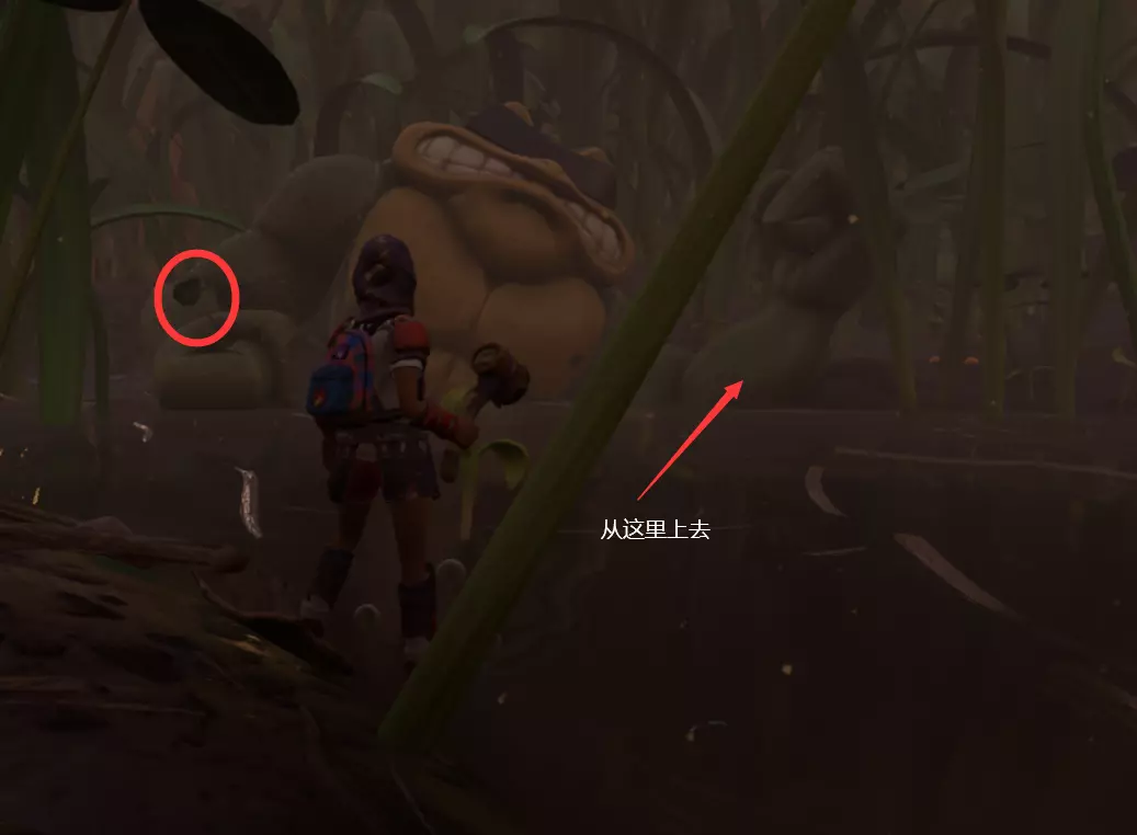 首先前往地图的指定位置,顺着藤蔓向上攀爬。找到可以登上的石缝后跳上去,向右移动,再跳到通往更高处的藤蔓上(此过程可能需要尝试两到三次)。