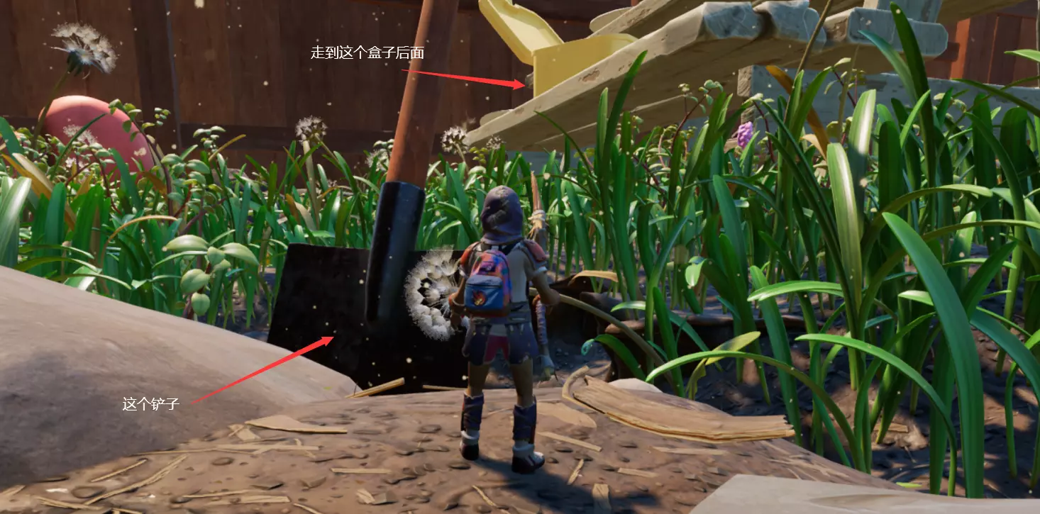 没有蚁狮套的伙伴这样跳不会伤血,注意一下角度就行。 2.第二种方法比较繁琐,但沙坑和火盆都可以去,记得带蒲公英! 首先我们去餐桌左边的铲子。