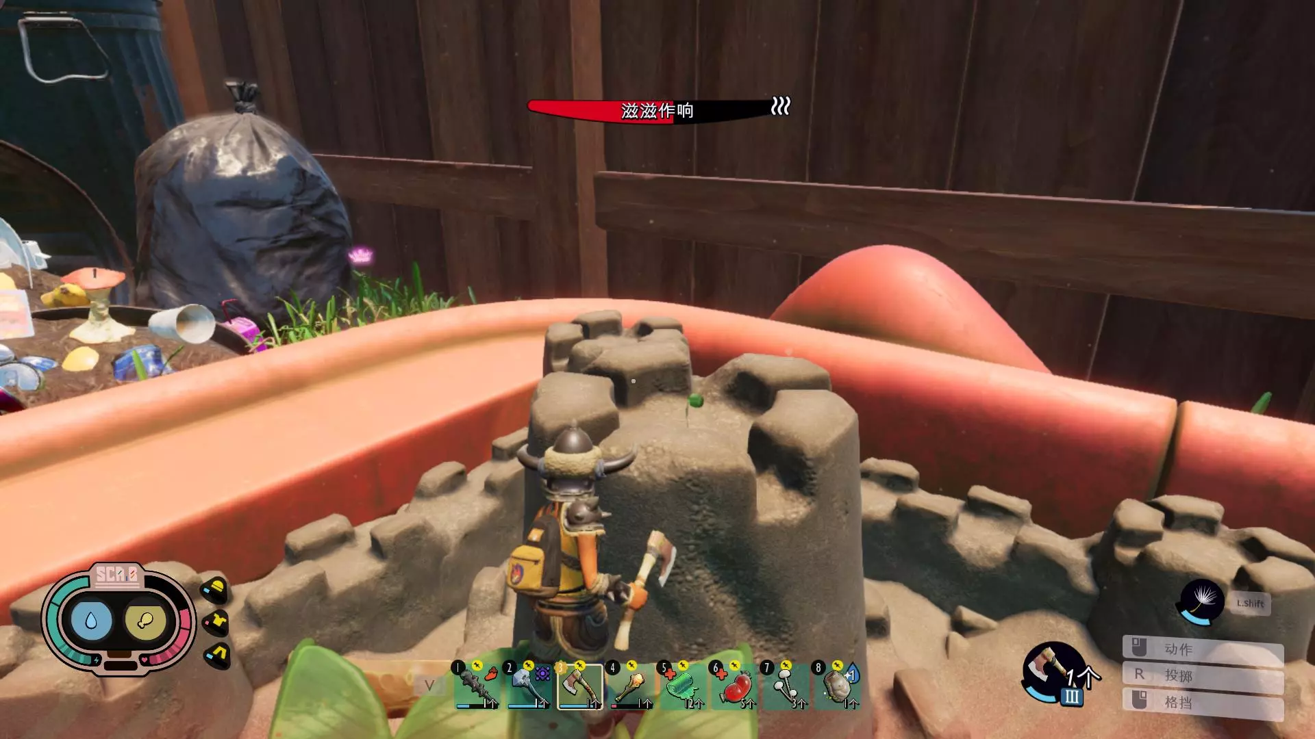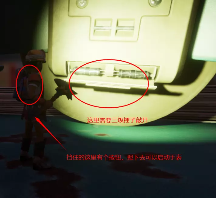 与拿手表的路线相似,从白色塑料刀顺着往里走,沿着香蕉皮前进就能看到罐子 3.SPCA.R运转 垃圾堆的电池上