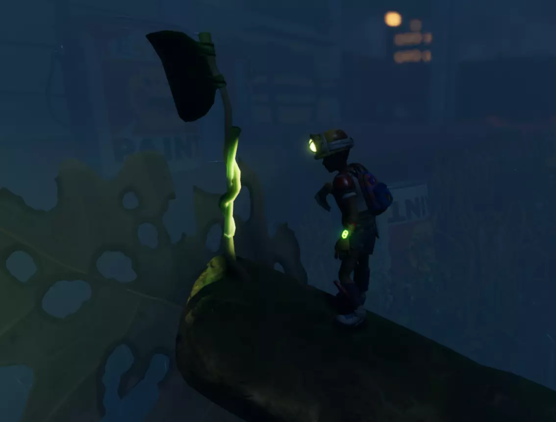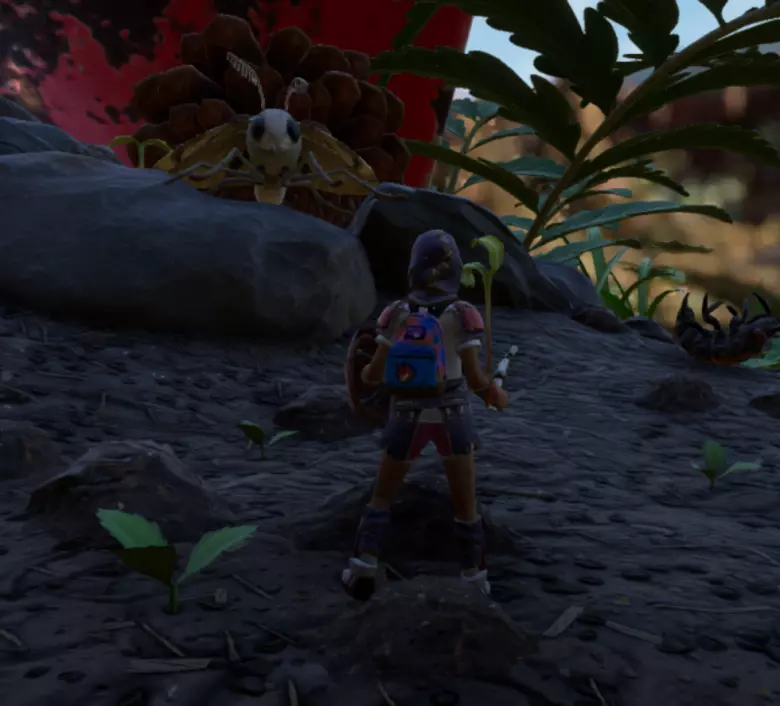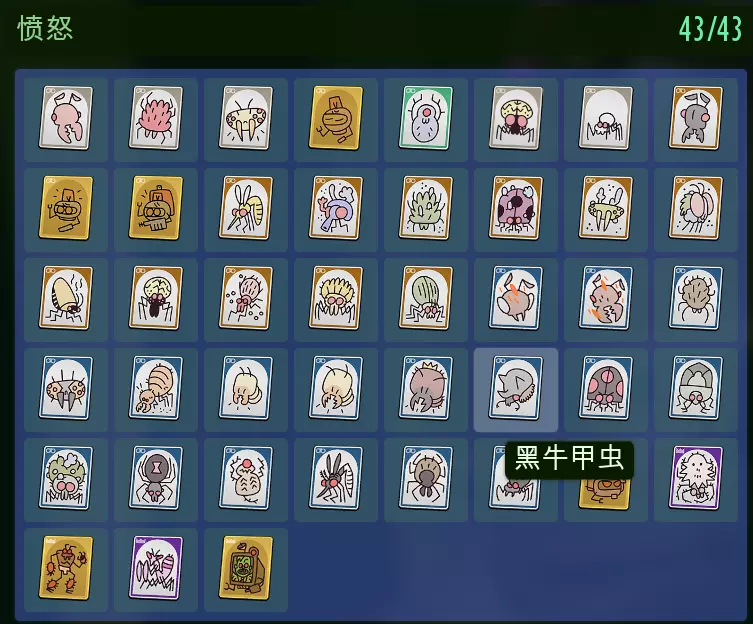 在白蚁洞的木头与右边木头的交界处,有一个背包,里面有5个闪烁甲壳。打金龟子可以用弓一箭射死,或者跟在它后面攻击(金龟子的视野范围比较广,一定要确定它看不到你了再跑到后面)。 雾霭实验室解锁熔炉,木料堆芯片解锁巨型糖球。 13.Gotta Peep Them All 收集齐全生物卡