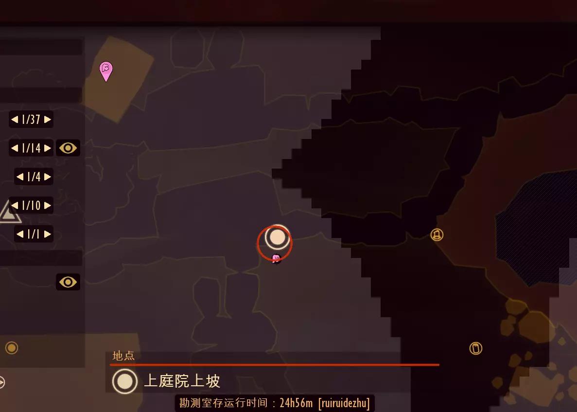 可以看到左边就是台子,跳上去往左走就可以看到尘螨。 补充一个前往打翻炭盆区域的路线: 首先我们到地图的上庭院上坡处。
