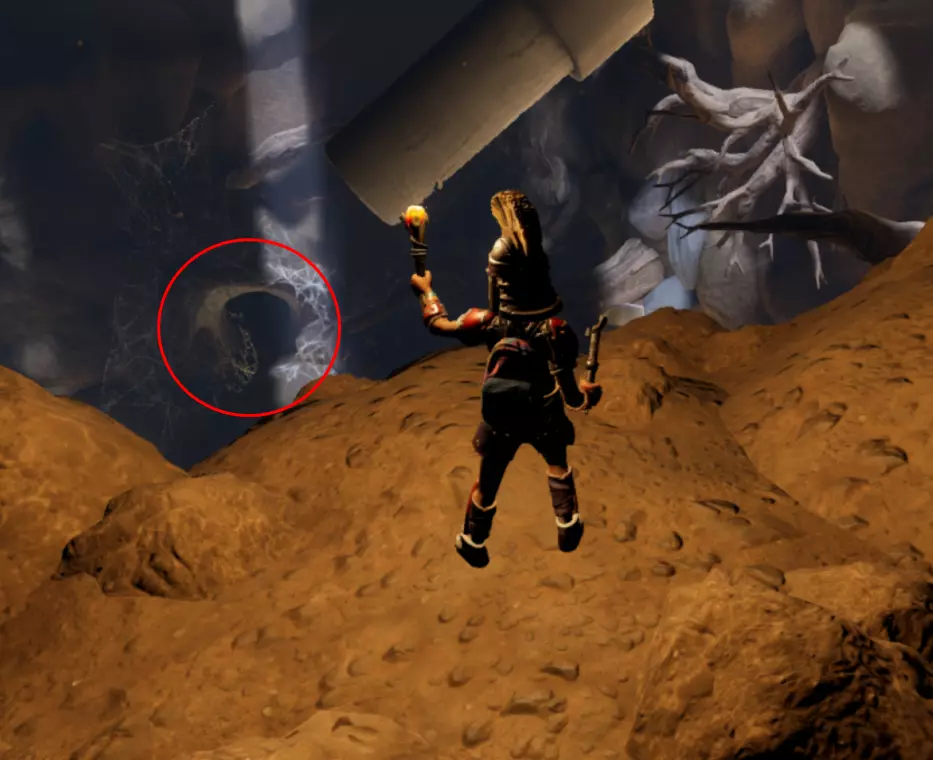 首先进入白蚁洞,走到中间的大厅,前往里面被木刺挡住的洞口前。