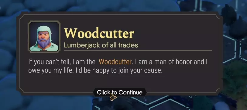 如你所见,找到囚车后,你需要进行4次天赋掷骰,且必须全部掷出正面才能成功。成功完成此事件后,樵夫将加入队伍,并在知识商店中解锁,售价为20本知识之书。
