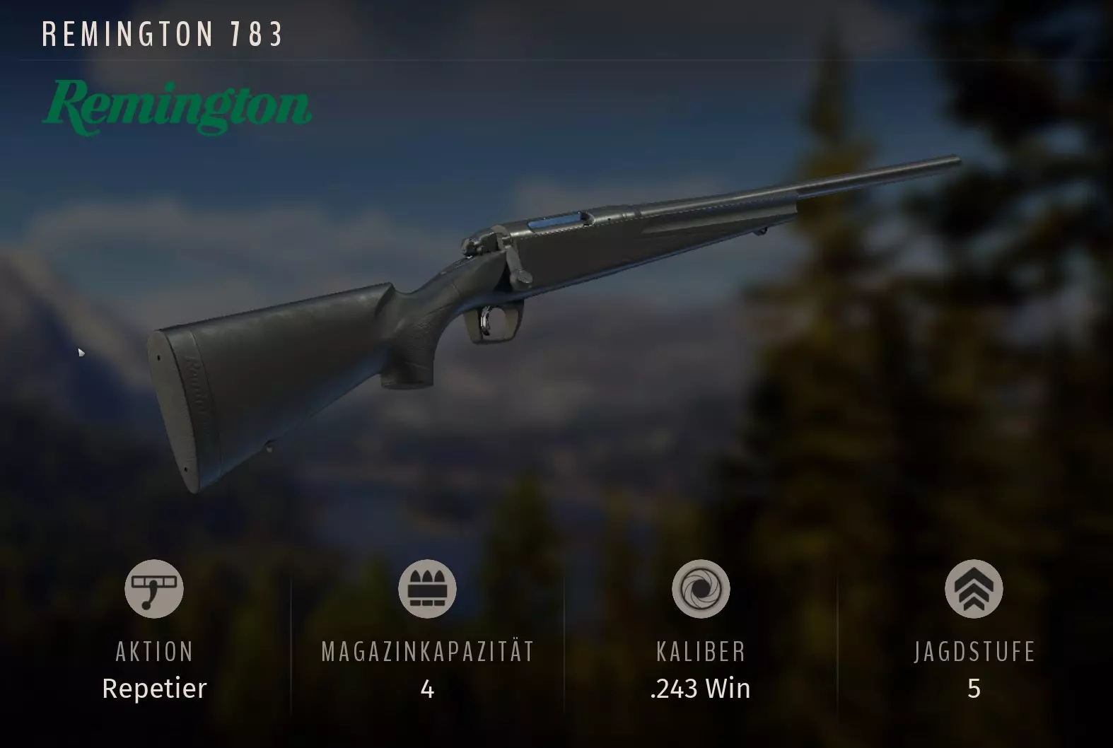 行动重复 弹匣容量 4发 口径 .243温彻斯特 狩猎等级 5 射程(米)和能量(焦耳)