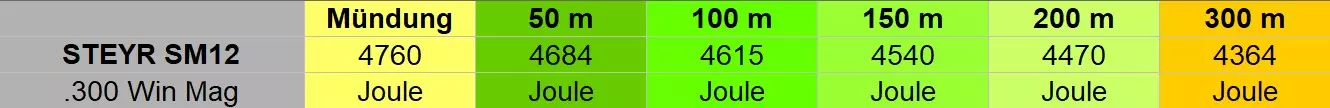 行动重复 弹匣容量 3发 口径 .300温彻斯特马格南 狩猎等级 6 射程(米)和能量(焦耳)