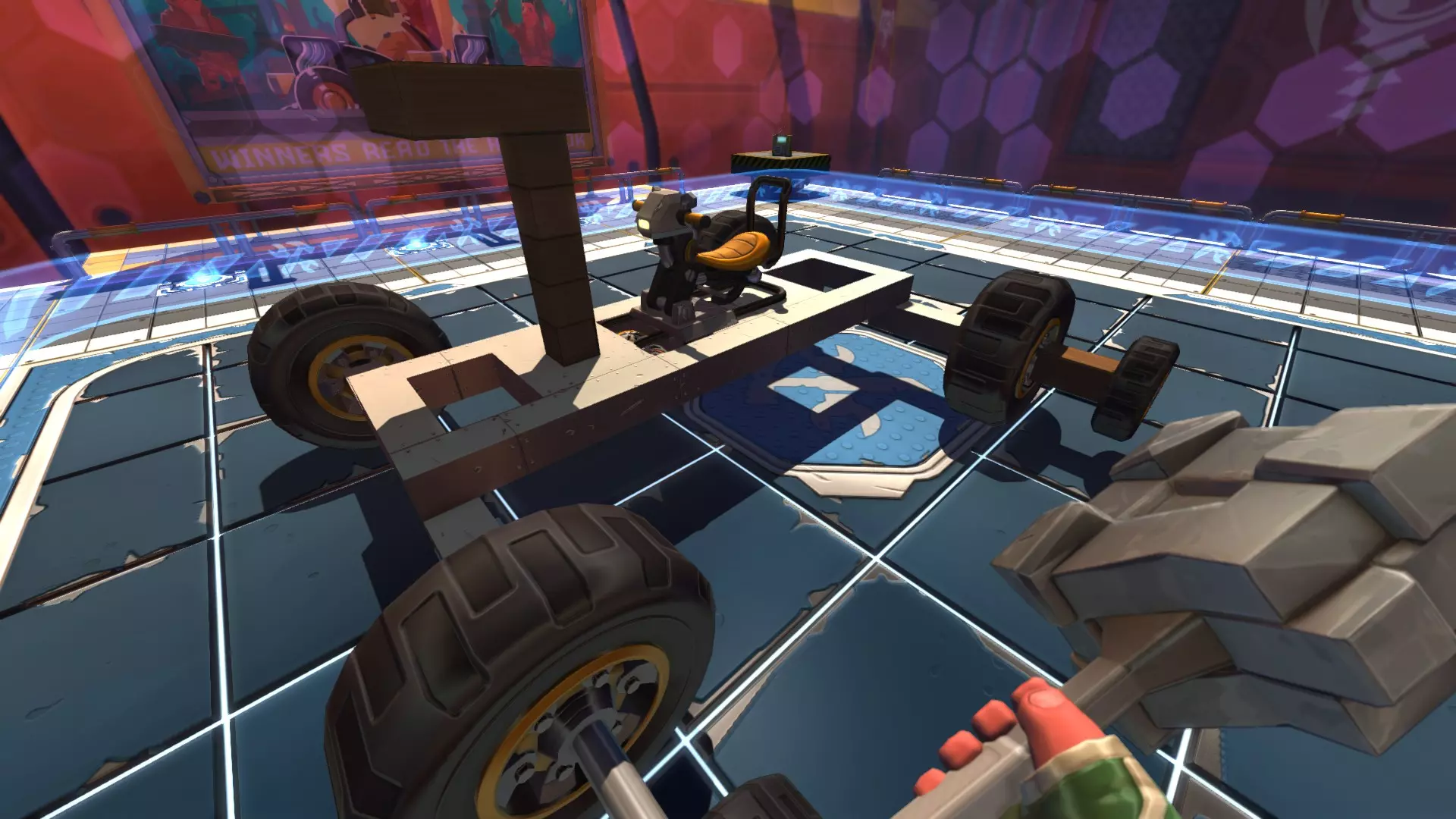 箱子里给你的锤子具有土豆炮的功能,所以只需靠近目标,用锤子击打靶子的红色部分。完成挑战的服装和头衔外观。