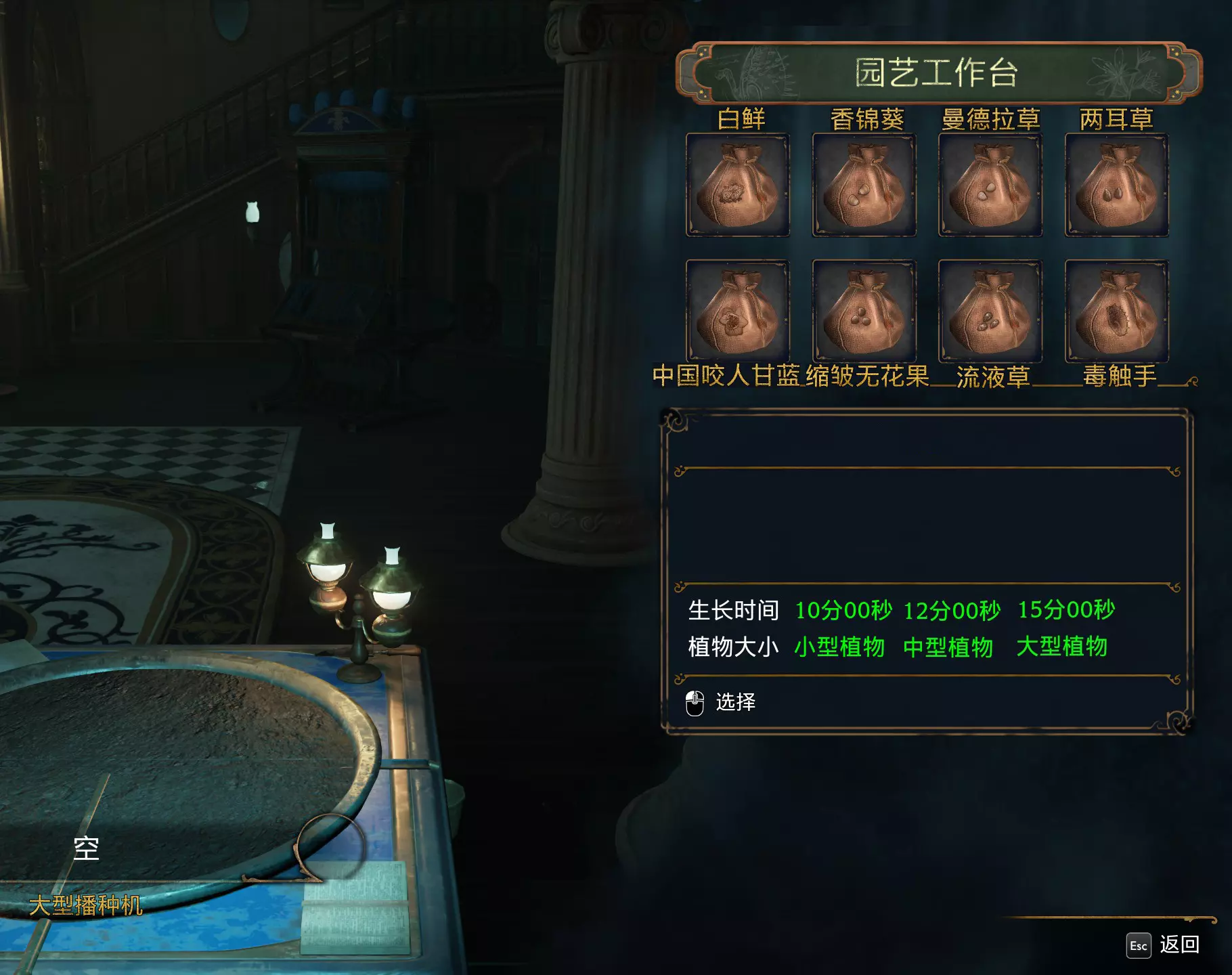 【成就】Put Down Roots 种植所有类型的植物 需要完成主线任务:有求必应屋 游戏共有八种植物供玩家种植,需要玩家前往霍格莫德购买大型播种机图纸(1000金加隆)(大型播种机可以种植所有体型的植物)和七种植物的种子(3800金加隆)。