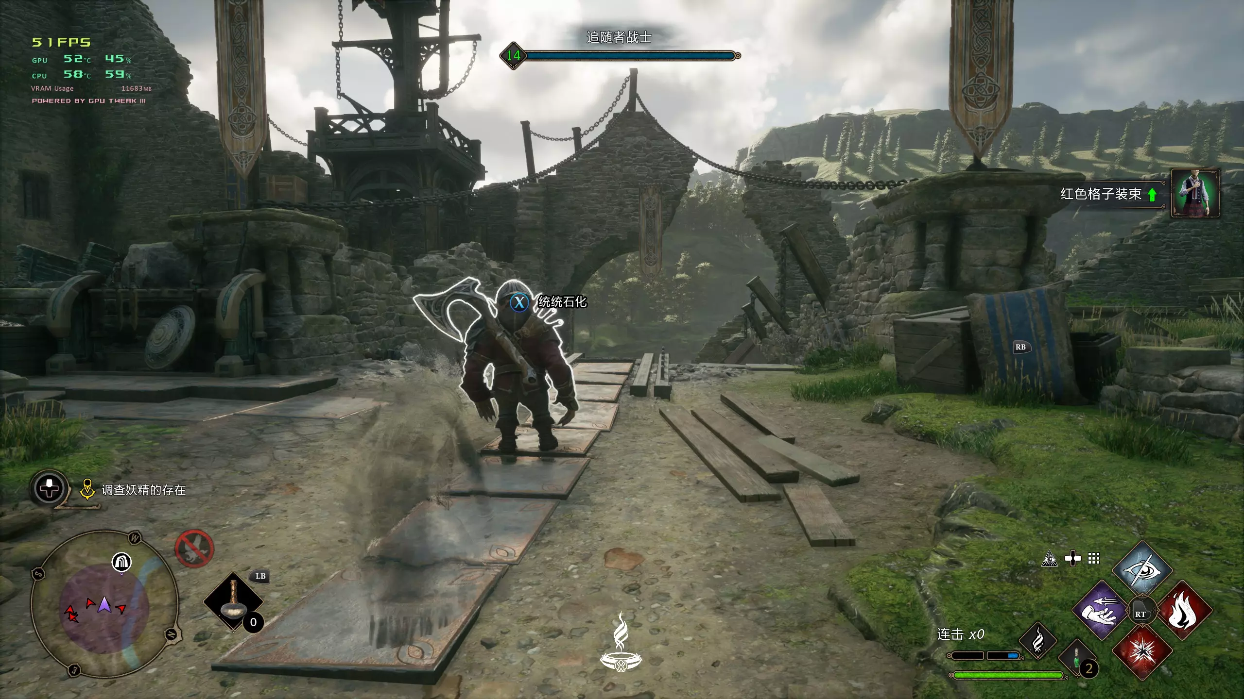 Raising Expectations 达到100连击 每次试炼的冥想盆保护者血量较高,可以刷100连击; 不过也有邪道,很无脑的刷法: 在世界地图霍格沃茨谷地——肯桥飞路之焰传送点旁边,有一个阴尸巢穴,阴尸只吃火焰魔法伤害,所以可以一直用基础施法【普攻】+盔甲护身【防御】刷连击来生成古代魔法能量。 基本只会挨打,图太大了压缩完有点抽象。