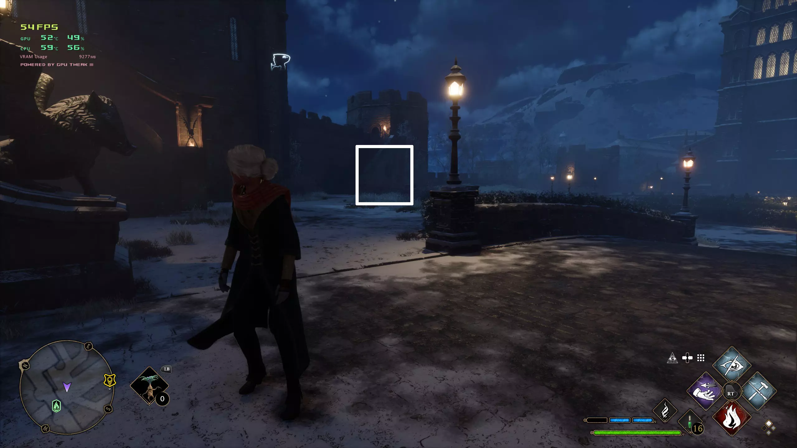 18.南霍格莫德飞路之焰【等级2】在路口先左转,下一个路口再右转,图示白框位置建筑,进门后上楼梯,在楼梯口左手边位置