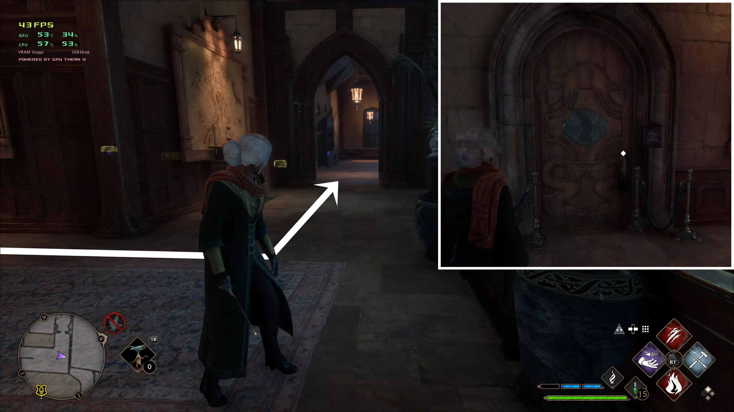 22.南霍格沃茨地区——阿兰郡飞路之焰向左看,图示建筑开锁,进门上到二楼