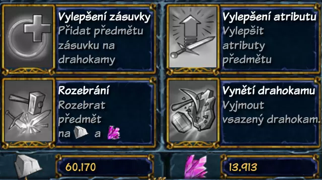 女巫也会收集物品。她每天收集不同的物品。然后你把物品扔进锅里就能获得金币。 铁匠 铁匠从90级开始解锁。双击盔甲店即可找到他。 铁匠提供4种功能:增加宝石槽位、强化属性、分解物品以及取出宝石。