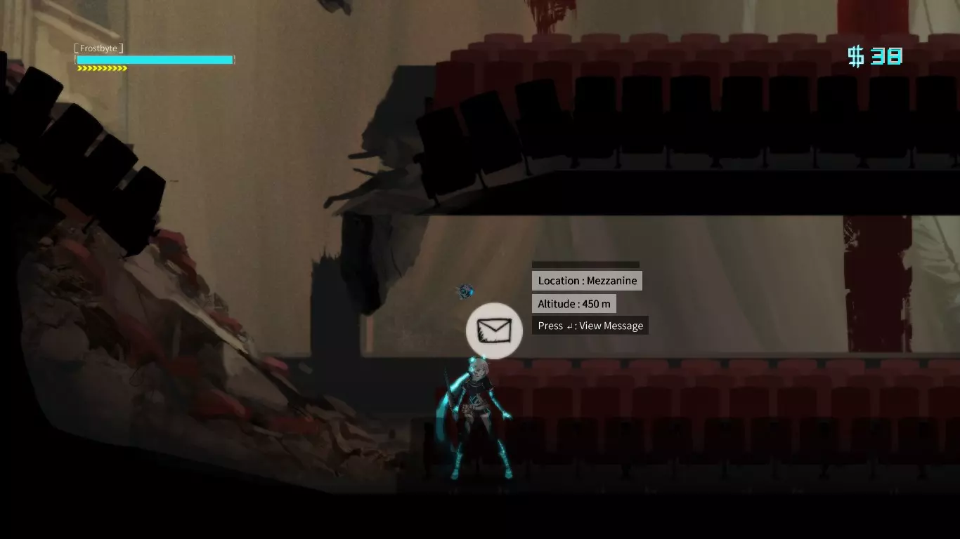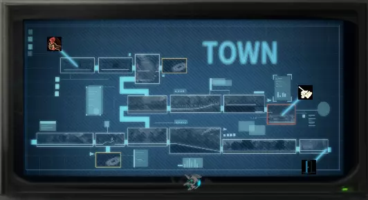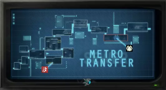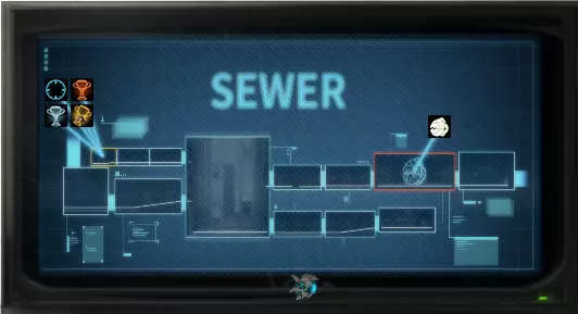 成就上显示的是【Emberville】,但实际上你要到达的是【Ultimopolis】。这个成就的达成方法很直观。无视入口,击败敌人,下一个场景就是大门。快速向右冲刺,直到穿过大门。另一种达成方法是正常通关游戏,然后在【Extensive I™ System Interface】中选择【Ultimopolis】,一直向左走直到无法继续。 地铁入口 地图