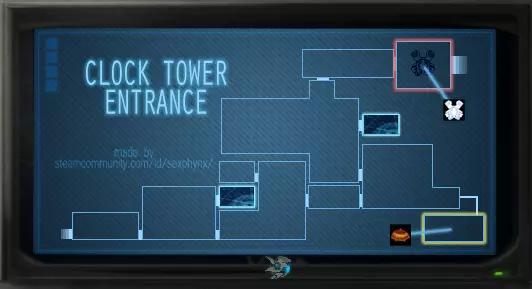 击败杰克后,无论选择哪条路都能到达监控室。击打黄王三次,即可解锁该成就。钟楼入口地图