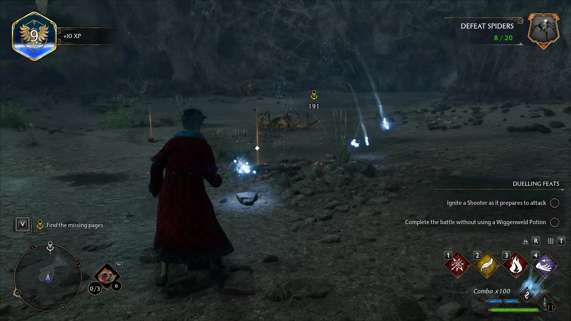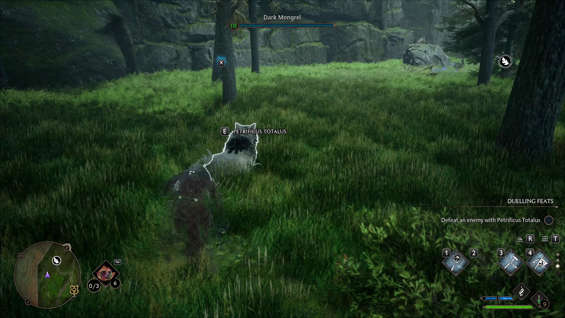【全身束缚咒】 悄无声息地靠近敌人,将其永久击败。完成主线任务10:禁书区的秘密。第一个法术能让你隐形,这样你就可以从背后悄悄靠近敌人,按E键施展全身束缚咒进行“背刺”。