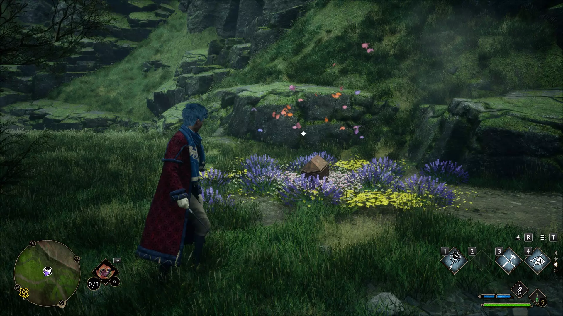 当你靠近蝴蝶时,它们会在地图上以白色蝴蝶图标显示。与其他收集品不同,发现蝴蝶后它们不会在地图上保持标记。只有当你再次靠近时,它们才会重新出现。蝴蝶位于固定位置,且数量众多。找到蝴蝶后,跟随它们直到它们停在一个地方盘旋。然后使用【 Revelio 】来显示一个收集箱。打开它以获得收集物品和该成就。