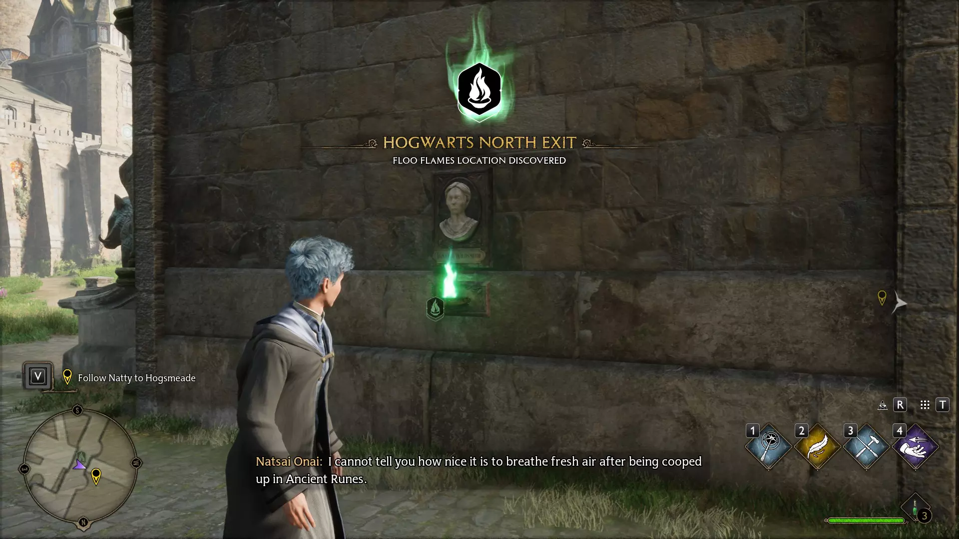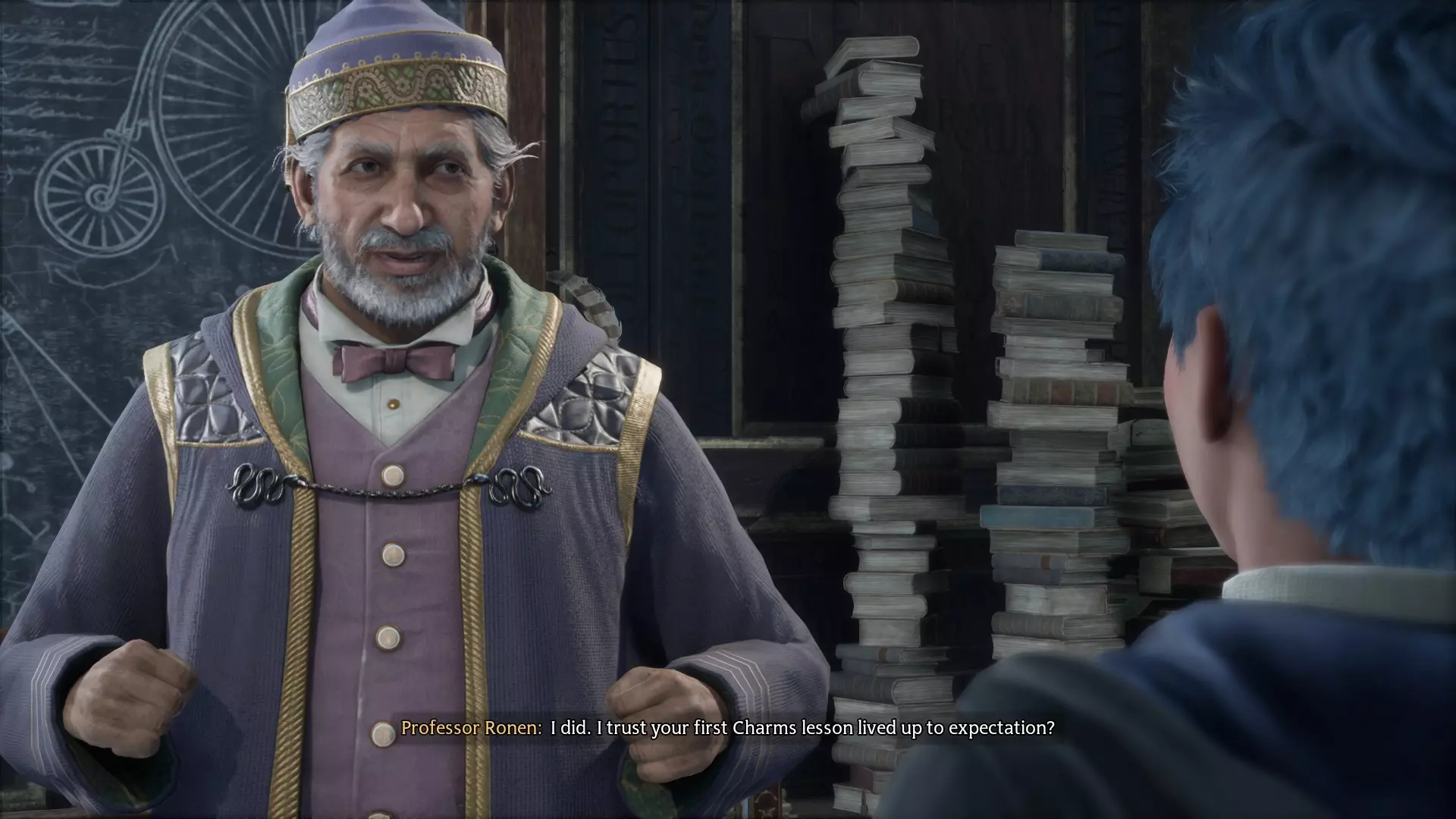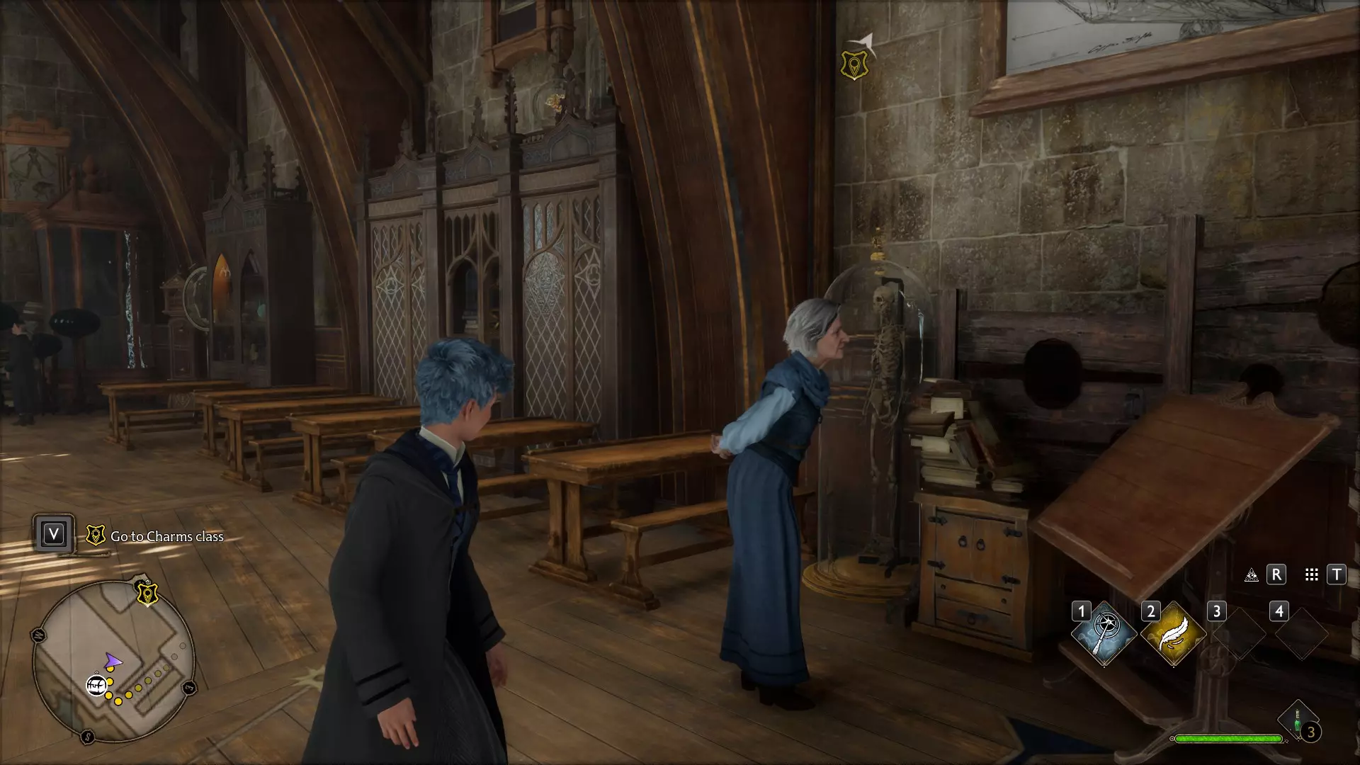 当你进入霍格沃茨并与学院的同学们稍作熟悉后,威斯里教授会与你会面。在简短的参观之后,你将有两个主线任务可供选择:主线任务3:魔咒课或主线任务4:黑魔法防御术课。完成其中任意一个即可解锁该成就。