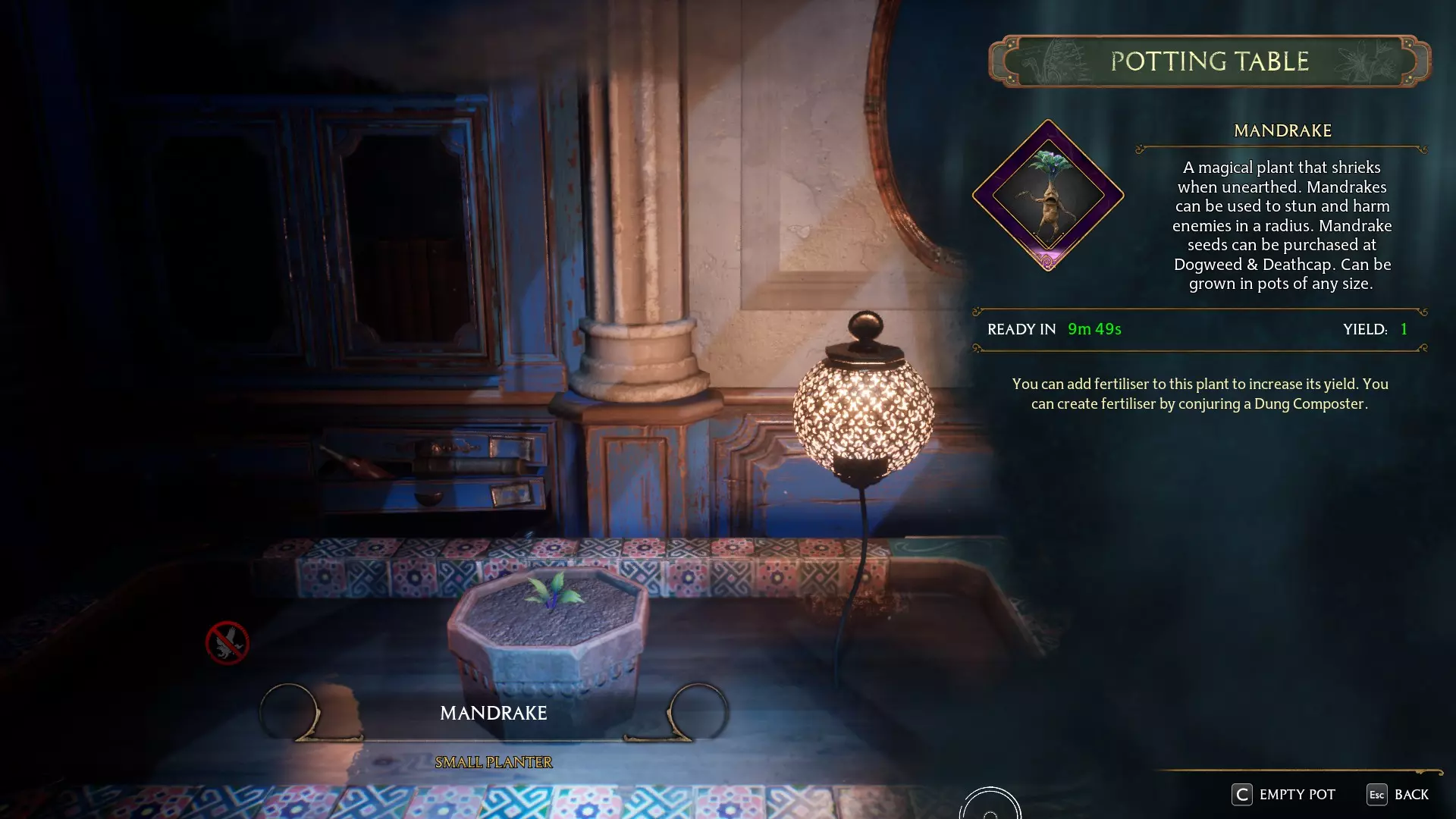 然后你可以无限种植这些种子,无需花费任何成本,它们需要10分钟生长成熟为曼德拉草以供收获。