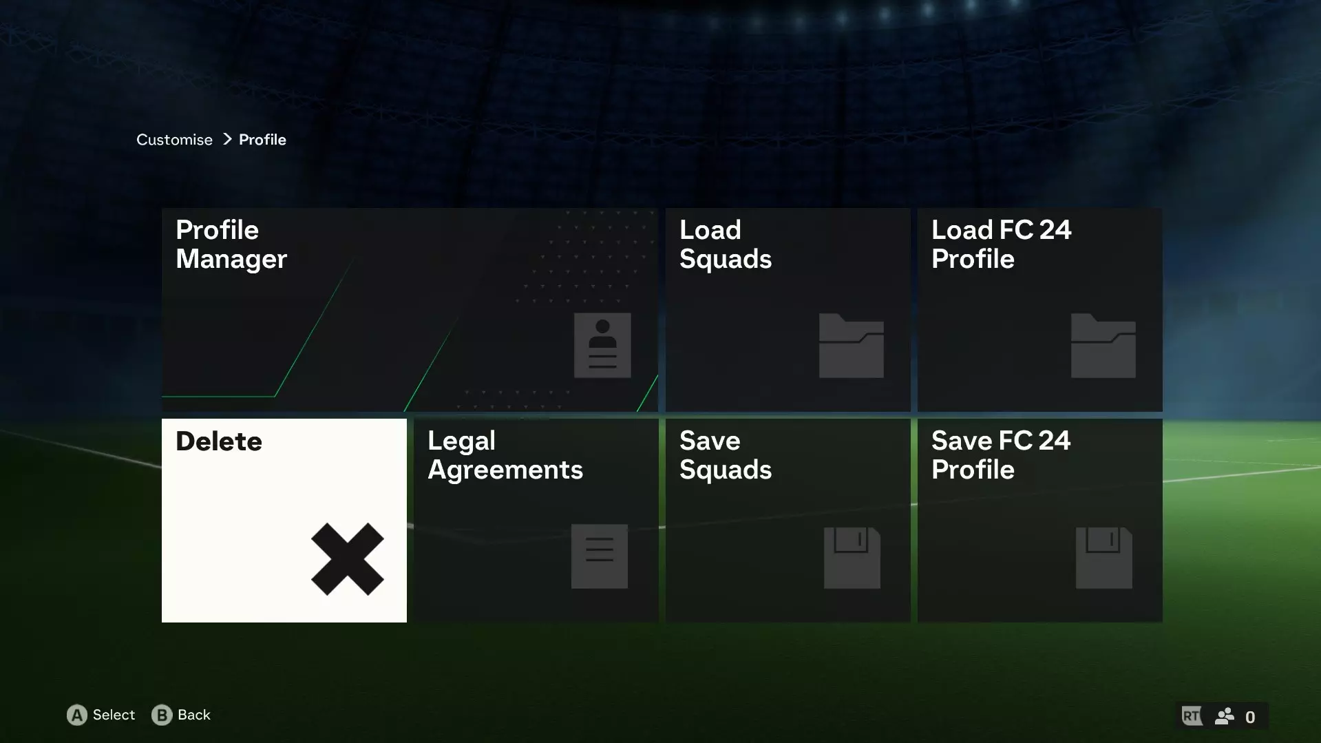 删除顶部列出的【个人设置1】。如果你重命名过个人设置,它会显示为你自定义的名称,同样需要删除。此操作不会影响你的任何游戏存档,例如终极球队、生涯模式甚至你的球员档案。