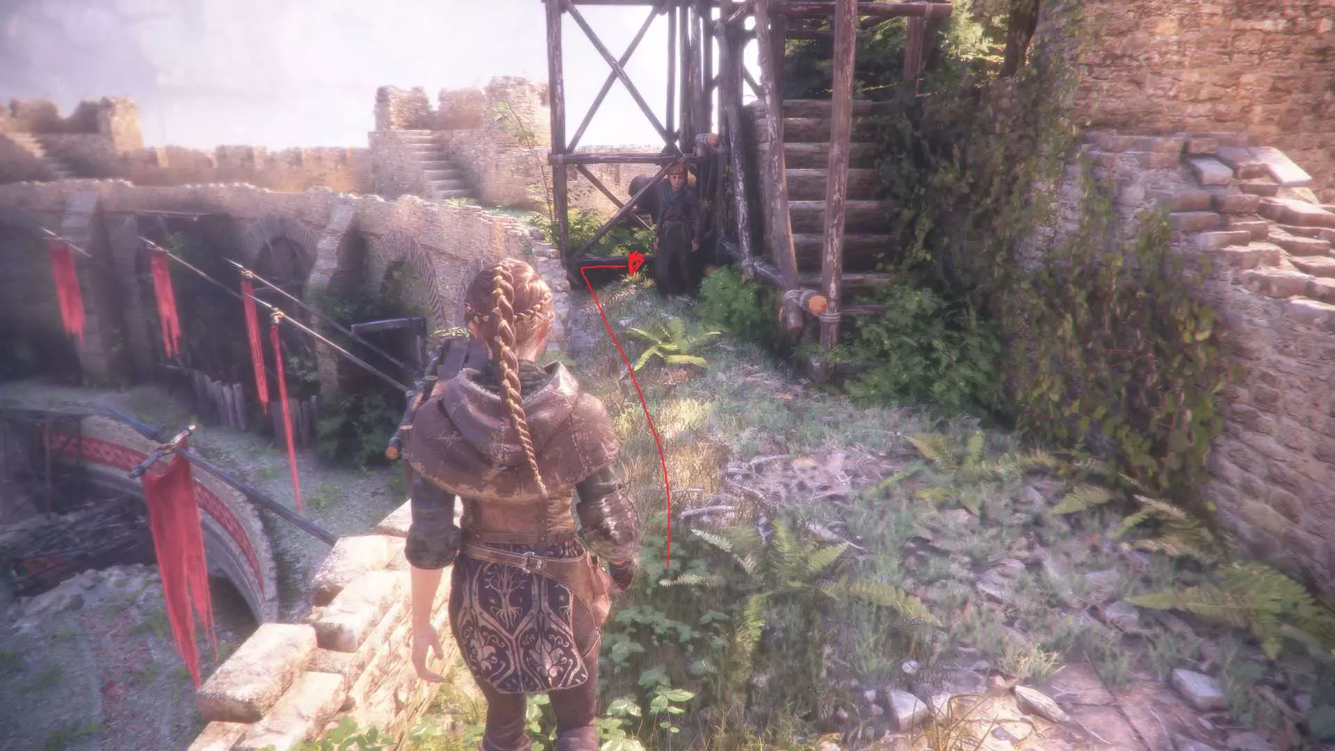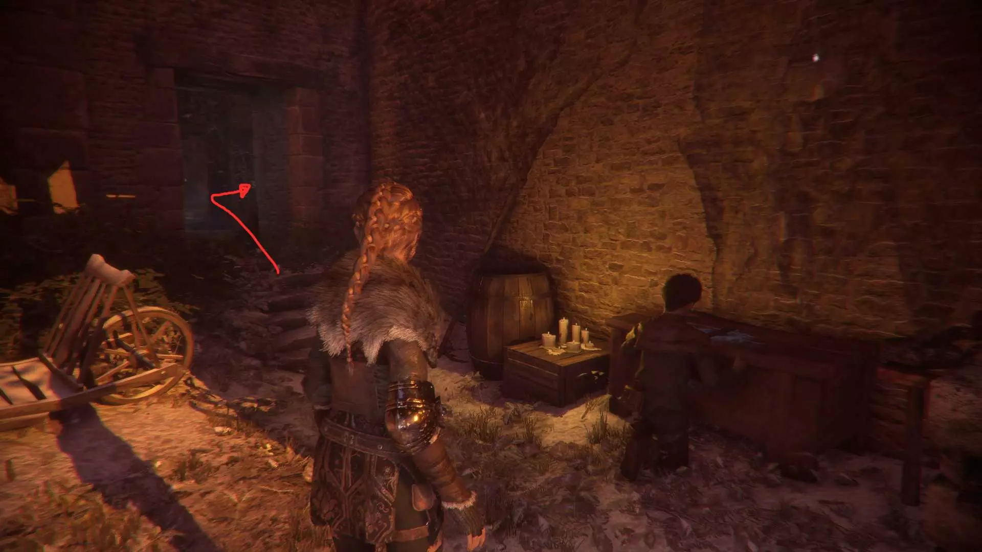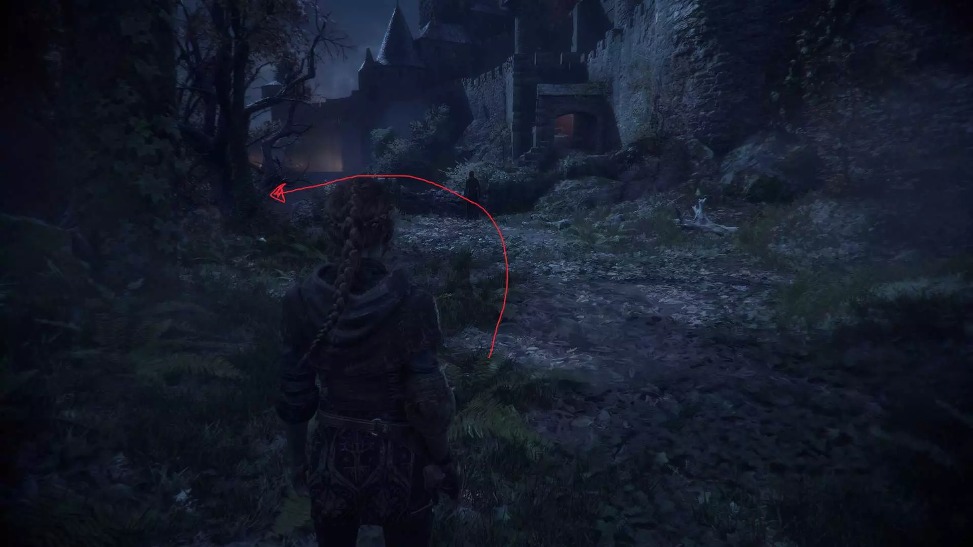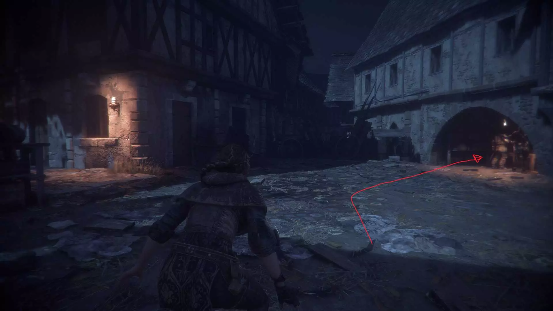 单独成就:【铁匠】 在你遇到被守卫关押的两名囚犯的地方,杀死守卫,然后向右走。在燃烧的火堆处右转,进入满是鼠巢的小巷,用你的投石索砸开锁着的门。回到你最初进入庭院的地方,你刚刚解锁的门就在正前方。穿过这扇门,当你靠近时,罗德里克会开始逃跑。