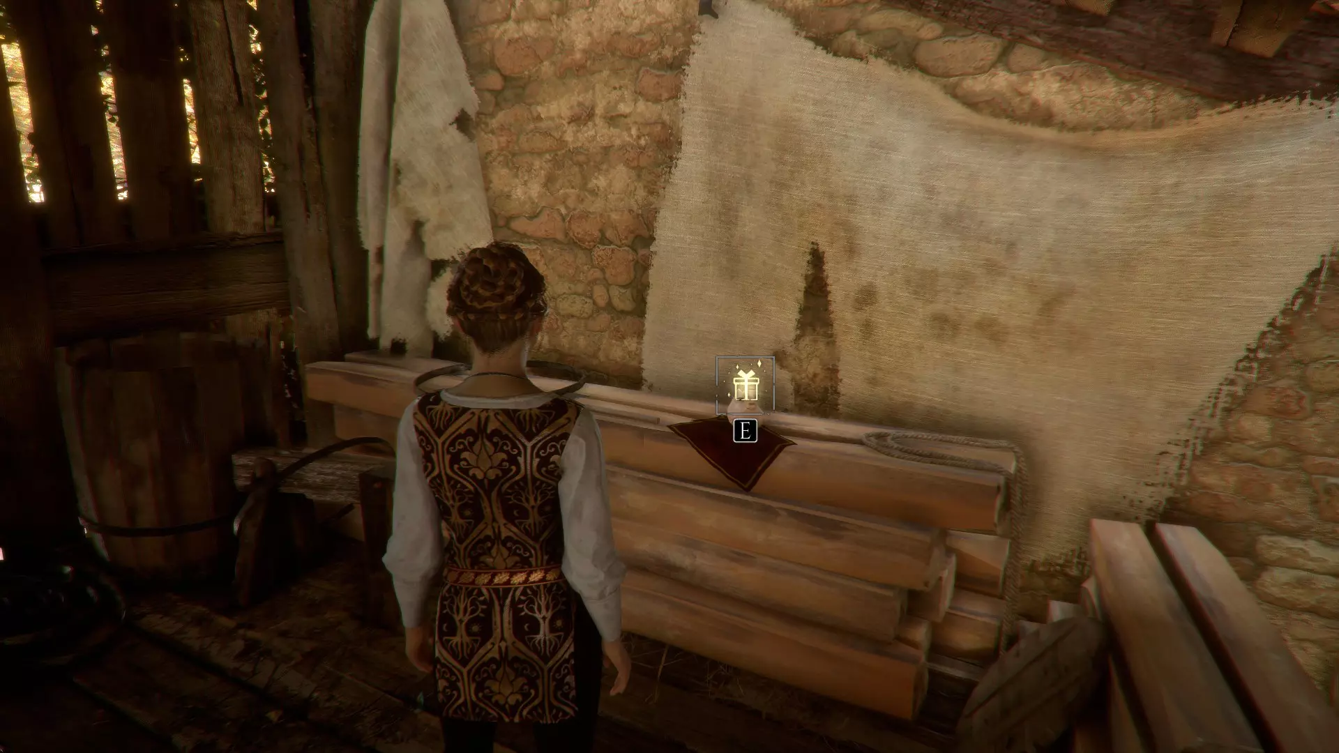 好奇心16 - 鸟语手册 与梅莉对话后,在木桶后面