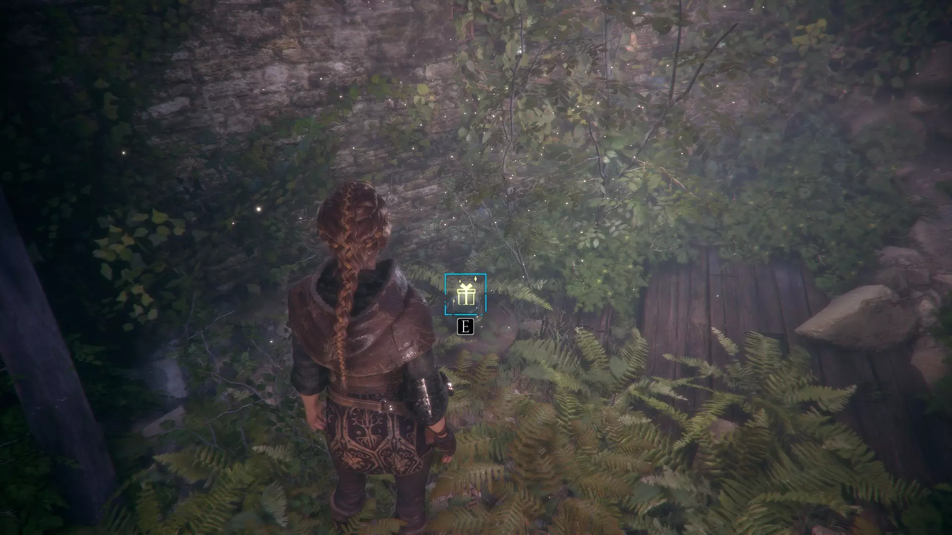 礼物8 - 炼金坩埚 拜访实验室里的卢卡斯后,再次跟随雨果。穿过起始区域右侧的门,经过工作台。你的右侧有一个杂草丛生的壁龛,礼物就在你的脚边。