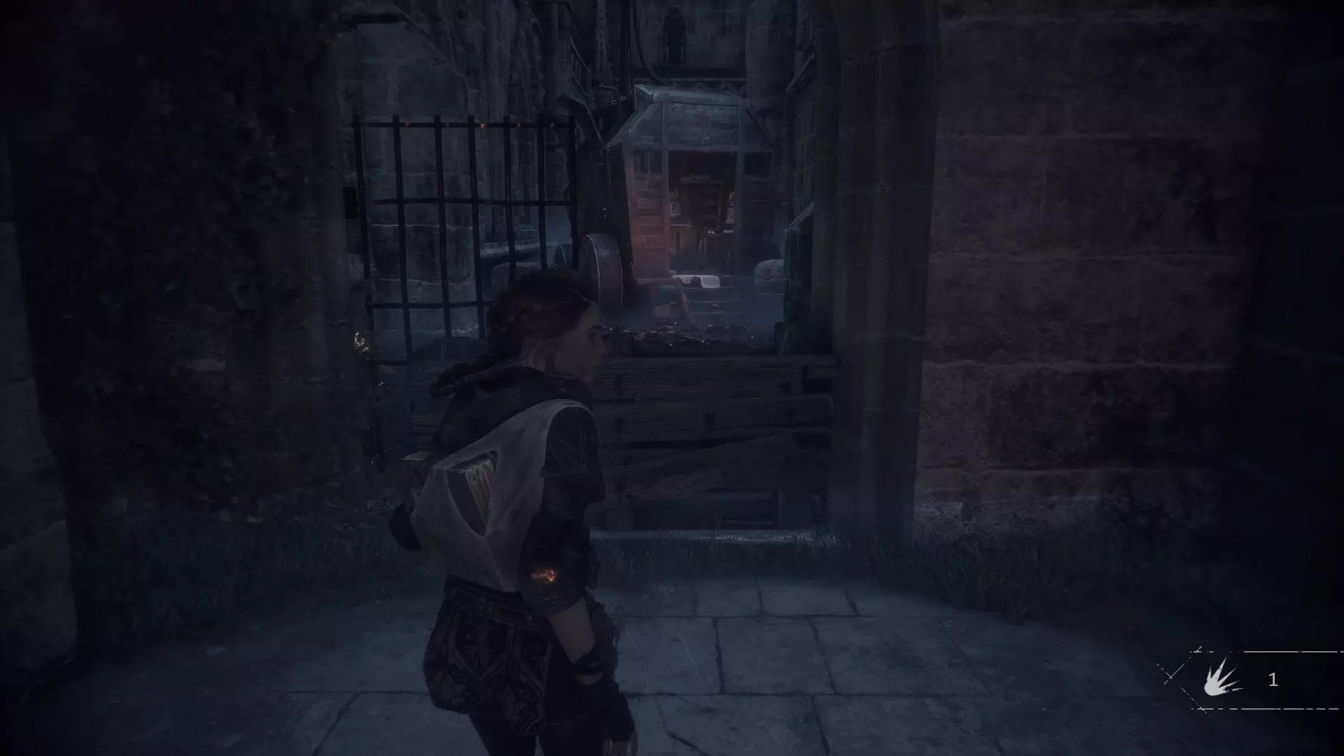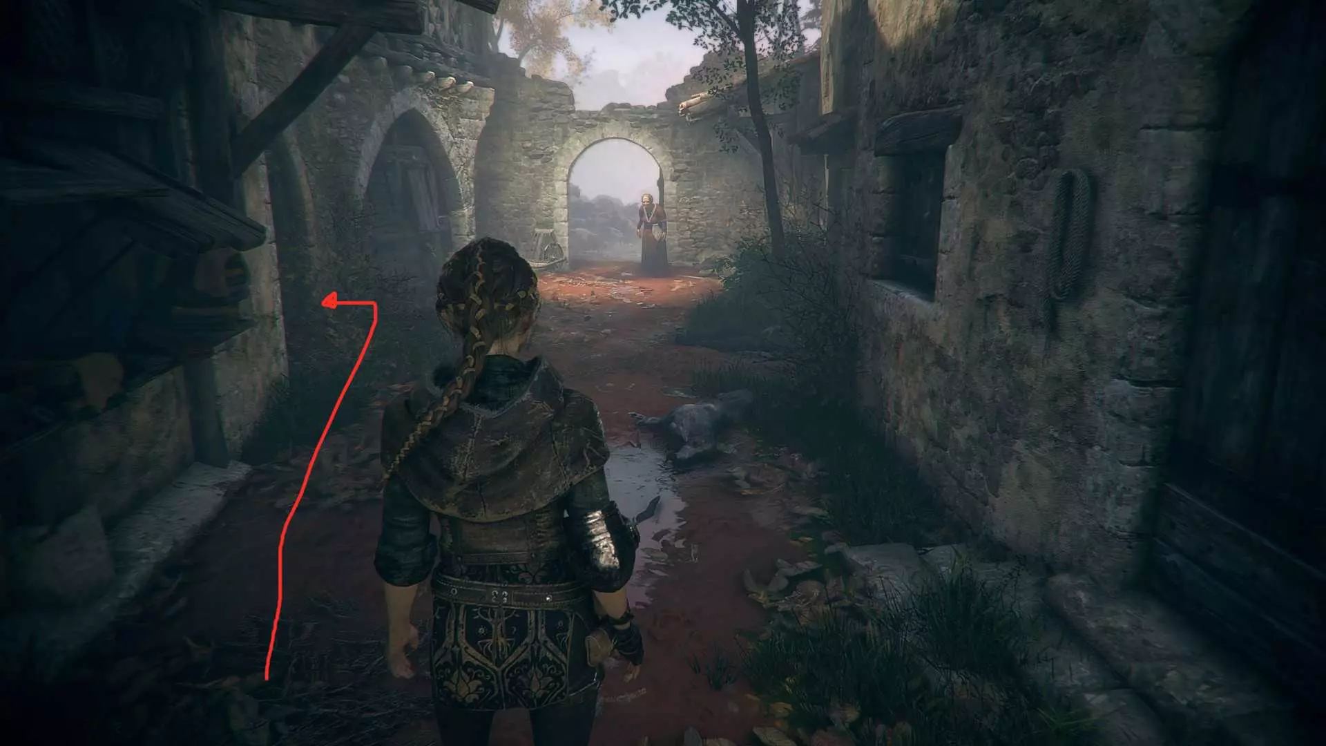 好奇心25 - 纪律 首次释放老鼠并用它们杀死两名守卫后,从守卫站立的位置向右转。那里有一条小巷。沿着小巷走并向左转,该物品就在一名死去的守卫旁边。