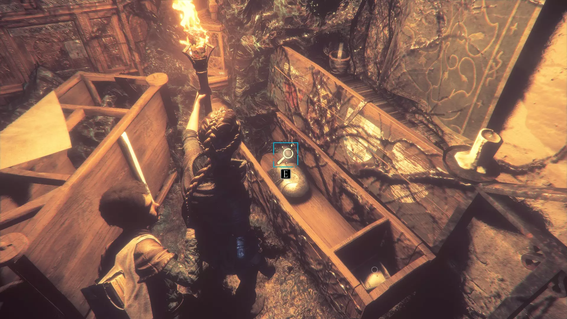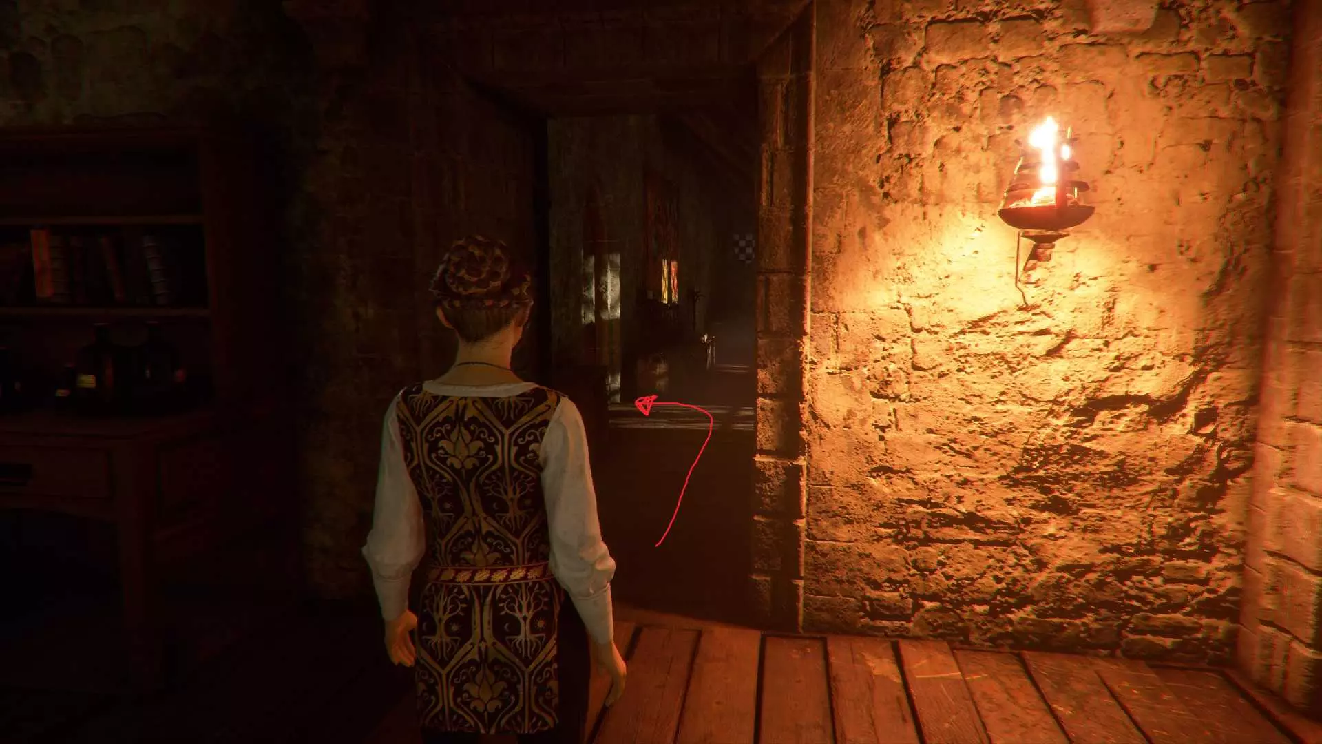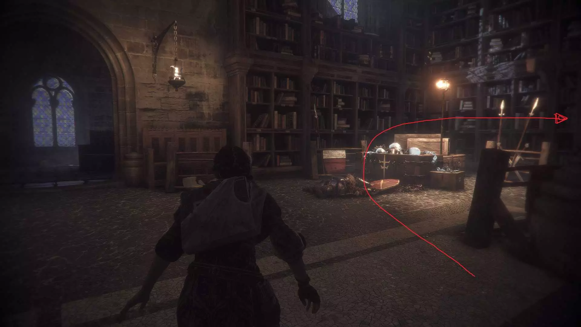 好奇心21 - 阿尔诺瓦头盔 在遭遇父亲的遗体和一大群老鼠后,拿到火炬后向右走。穿过开口,然后向左走。你会经过两名仆人的遗体。在有女仆人遗体和墙上盾牌的房间里,前往房间后方右侧角落的箱子内,即可找到该物品。
