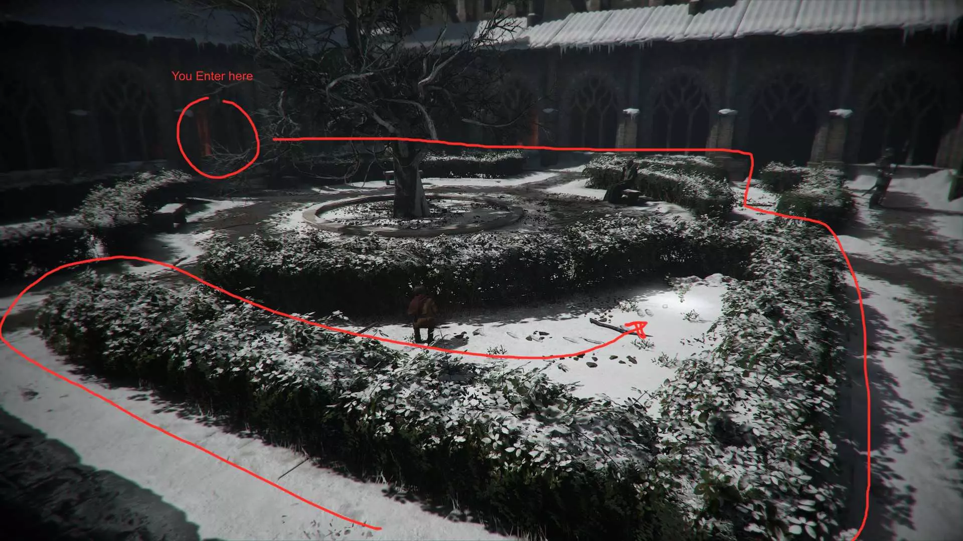 花朵13 - 圣诞玫瑰 在罗德里克开始破门且士兵向你冲来的战斗后,将他们全部消灭。穿过你对面那些卫兵出来的大门。在小路的尽头就是这朵花。