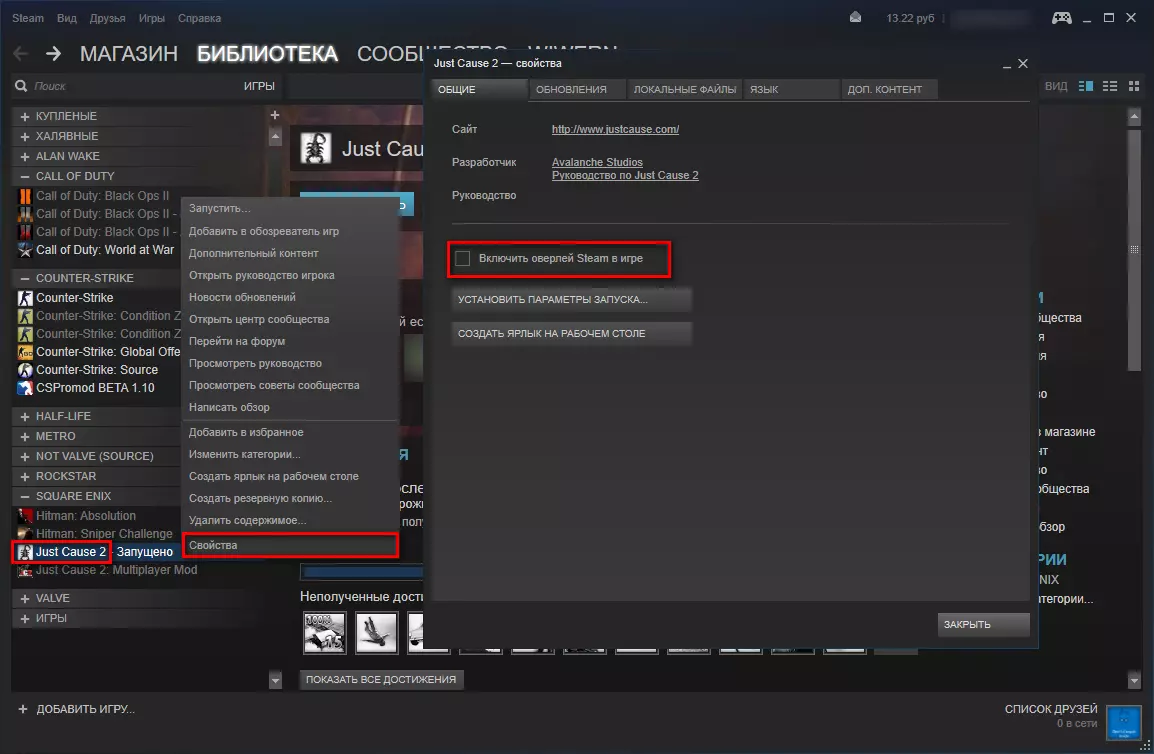 关闭Steam覆盖层 打开Steam客户端。找到游戏【正当防卫2】,右键点击并选择属性。在窗口中取消勾选【在游戏中启用Steam覆盖层】,然后关闭窗口。