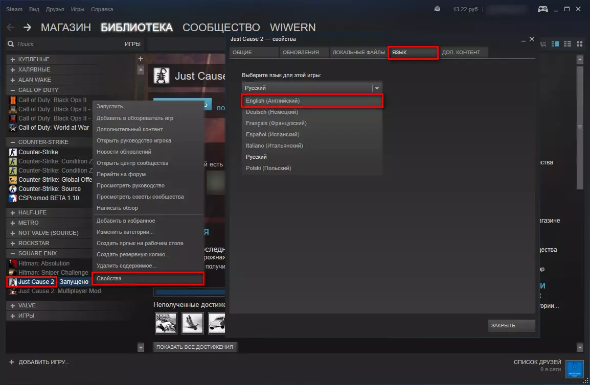 如果上述方法无效 更换游戏语言 尝试在游戏属性中将语言更改为英语。 在极少数情况下,此方法会奏效。