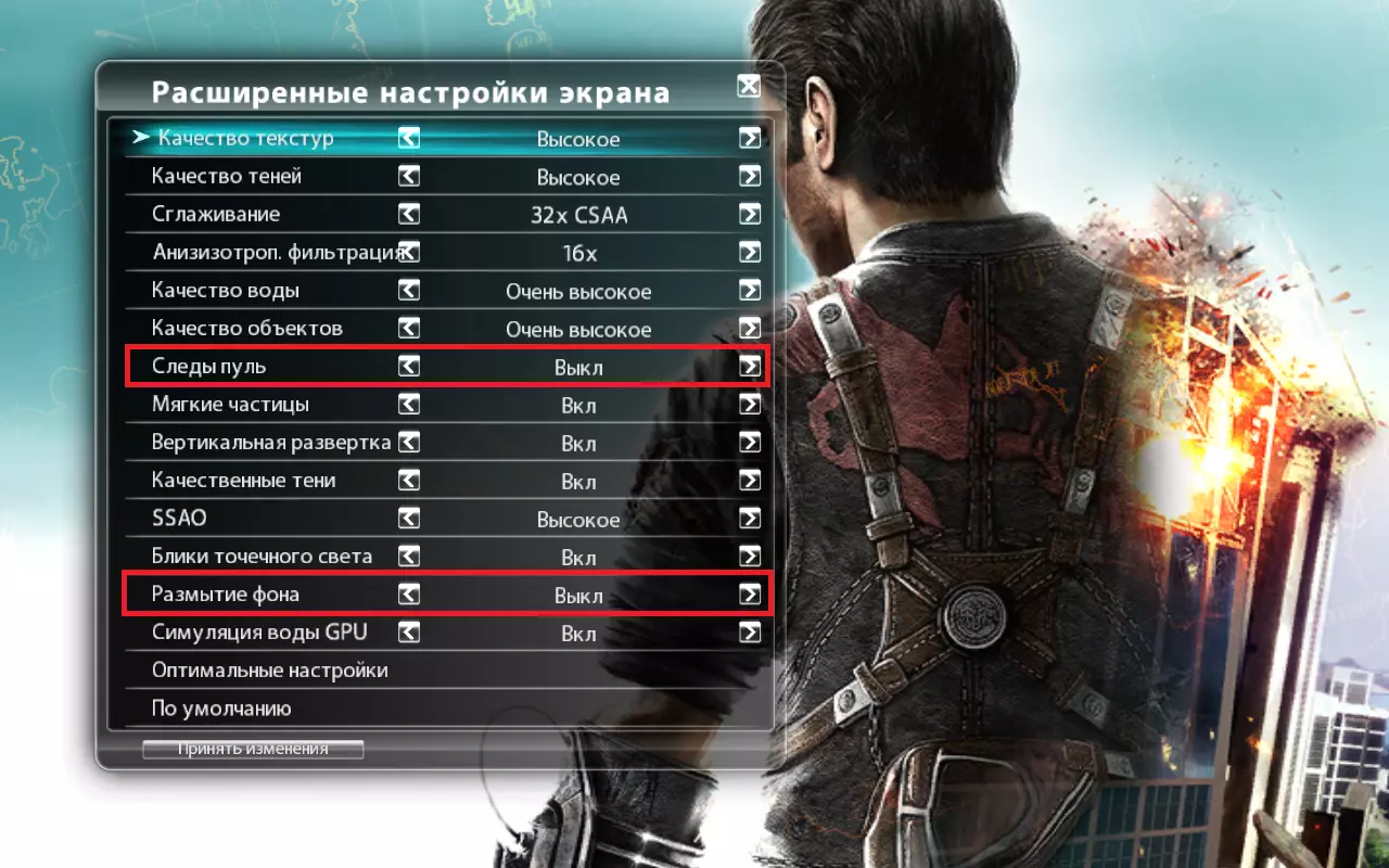 修改图形参数 在游戏设置中进入屏幕高级设置。关闭【子弹痕迹】(Decals)和【背景模糊】(Bokeh Filter)。