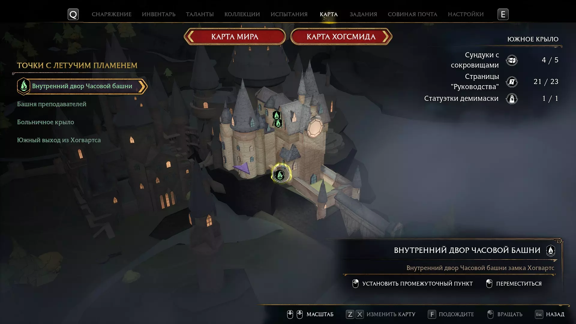 在格兰芬多塔楼的厕所里。传送到南翼的“钟楼内院”位置。旁边有一扇门,门后是石桥。跑过去就能进入塔楼。