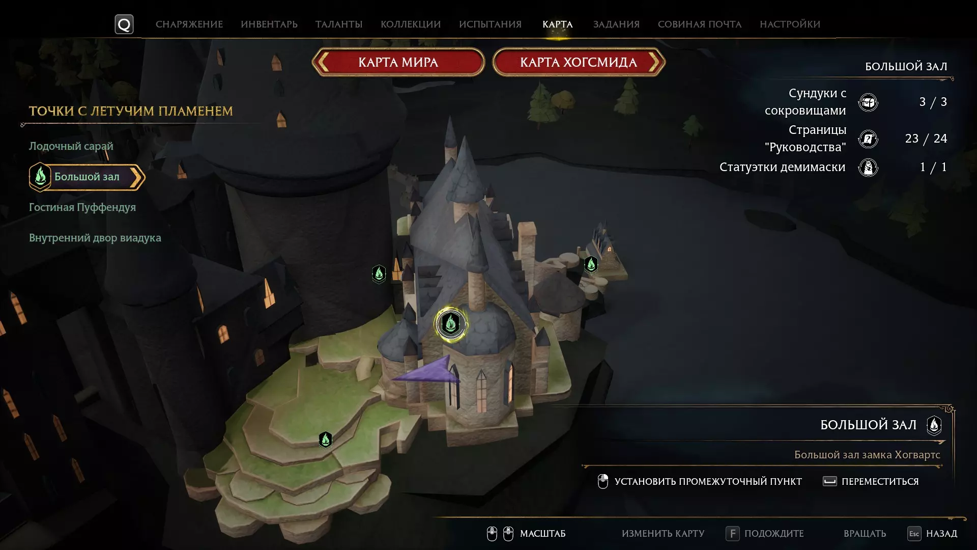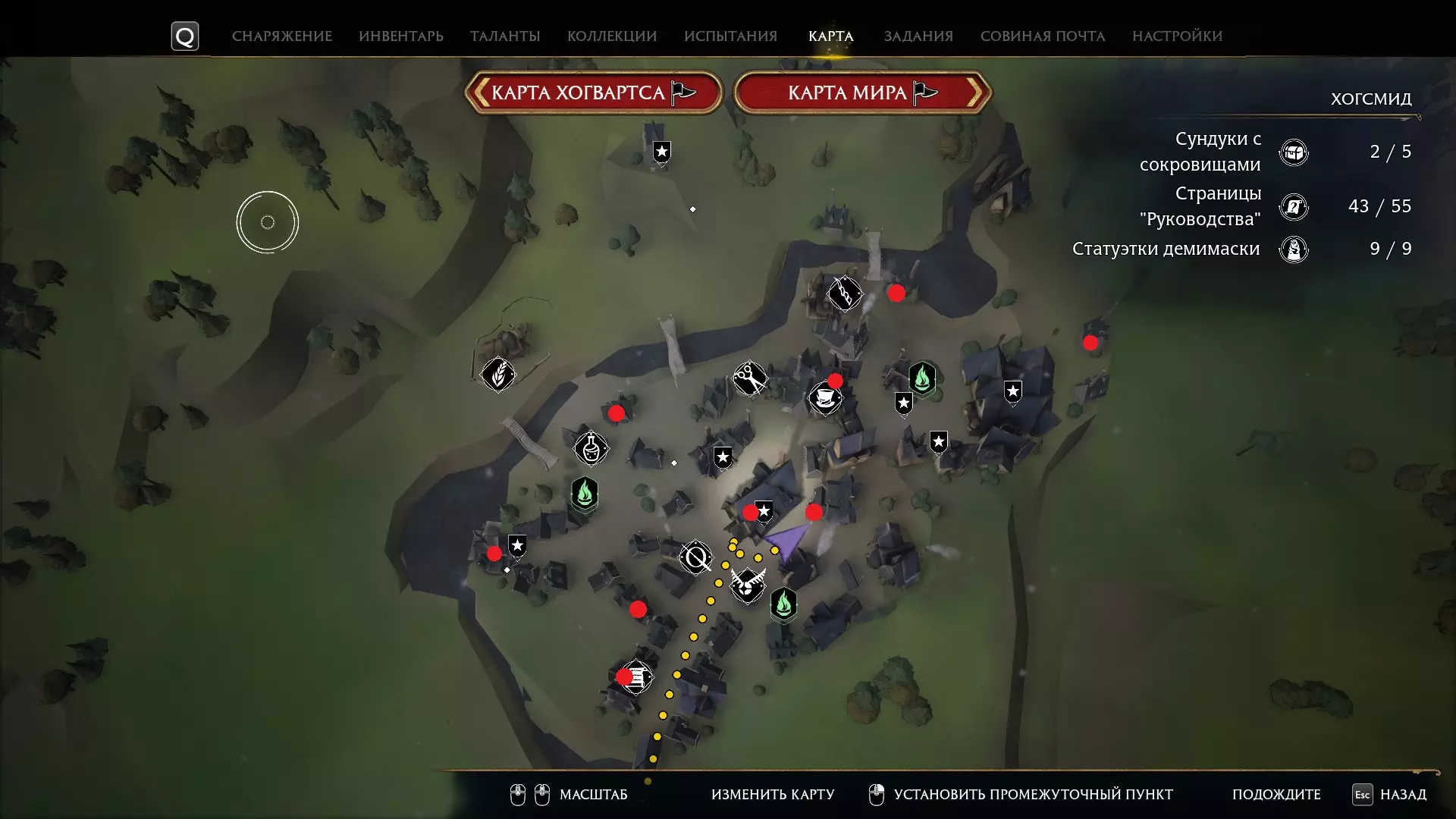 收藏家 收集所有藏品。 游戏中有1257个可收集物品,数量非常多。理论上,这应该是你在主线游戏中解锁的最后一个成就。我强烈建议使用Genie的互动地图。请对照主地图、霍格莫德地图和霍格沃茨地图进行查找。在救助室的所有4个魔药课教室中都有收藏品,请仔细寻找。如果你的魔法值为139或140,或者属性点为74或75:对于74或75的属性点,营地中的每个宝箱都应该会给你一个属性点,如果你清理了营地却什么都没得到,那就重新加载较早的自动存档。如果您在指南页面、收藏品宝箱、半面人雕像、生态箱宝箱、蝴蝶宝箱、门钥匙、梅林试炼、气球套装、着陆平台、古代魔法点以及那些臭名昭著的敌人方面遇到问题,可以使用Legilimens程序。这是一个能帮助你找到《霍格沃茨之遗》中最后几个缺失的收集品的工具。 - 所有试炼