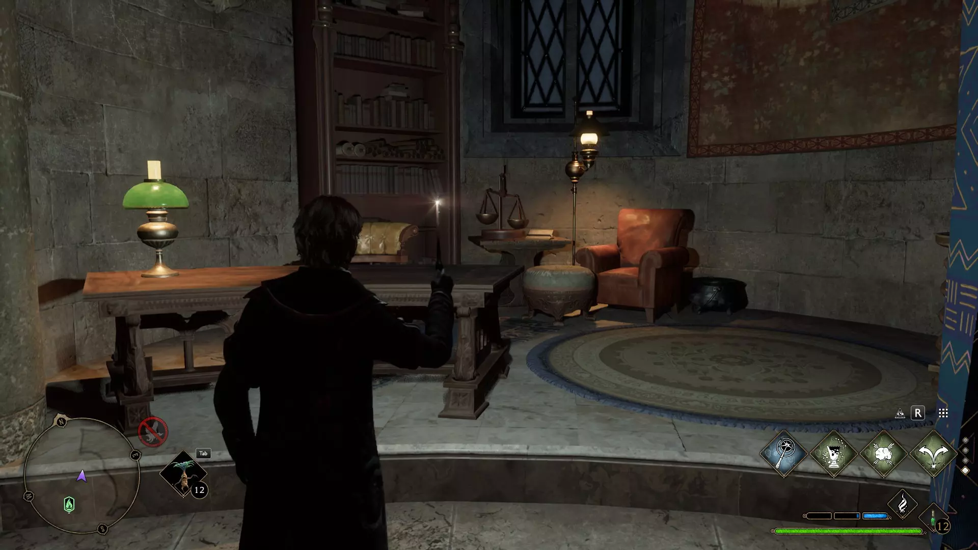 格兰芬多学生在墓地 扮演格兰芬多学生找到地图室。 在序章中,你必须选择格兰芬多学院,并完成游戏直到获得天赋。只做主线任务。