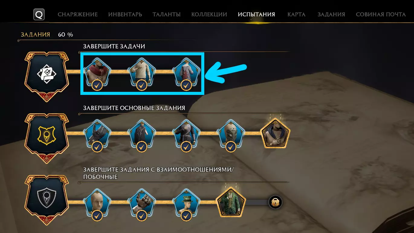 挑战已接受 完成所有试炼关卡。 打开书本,进入试炼章节。其中包含5个部分:战斗、任务、调查、“指南”页面、救援室。需要完成任意章节中的任意一条试炼链。我通过这条试炼链获得了成就。
