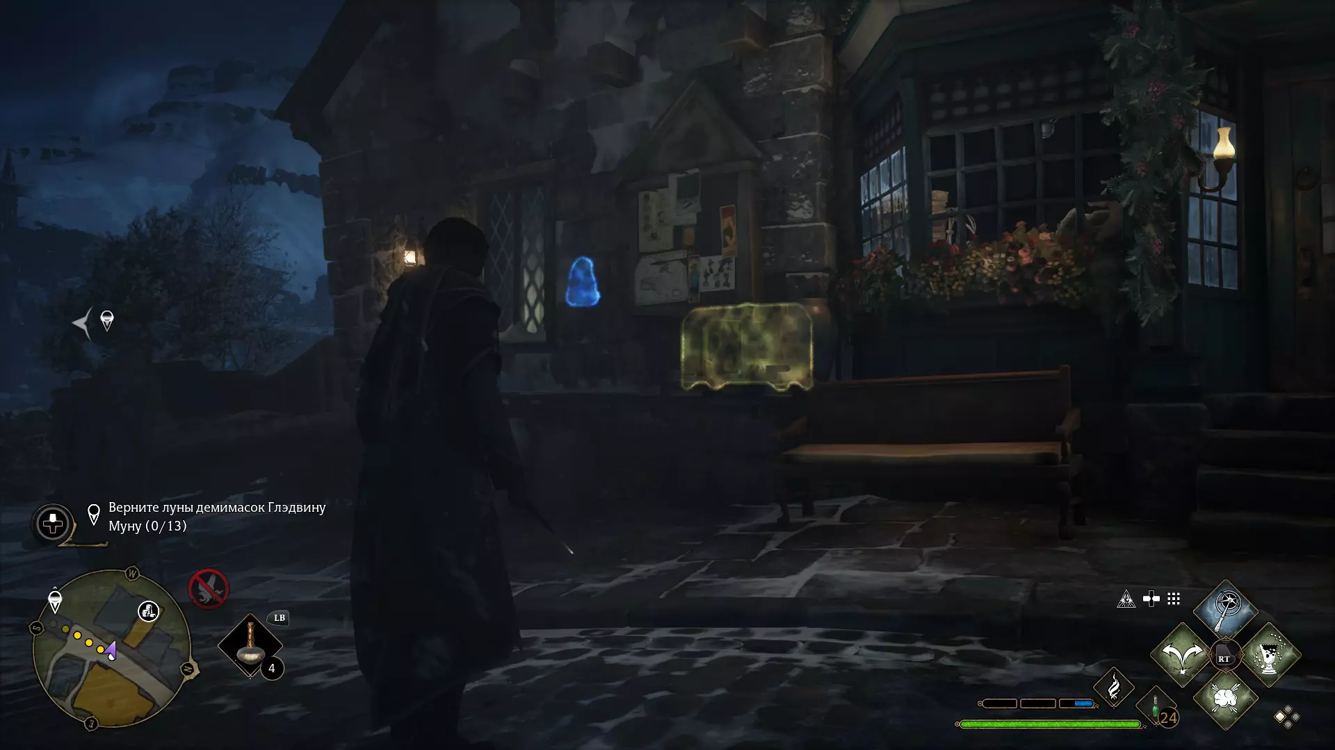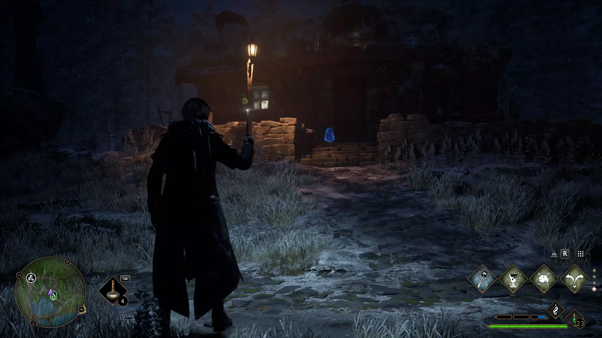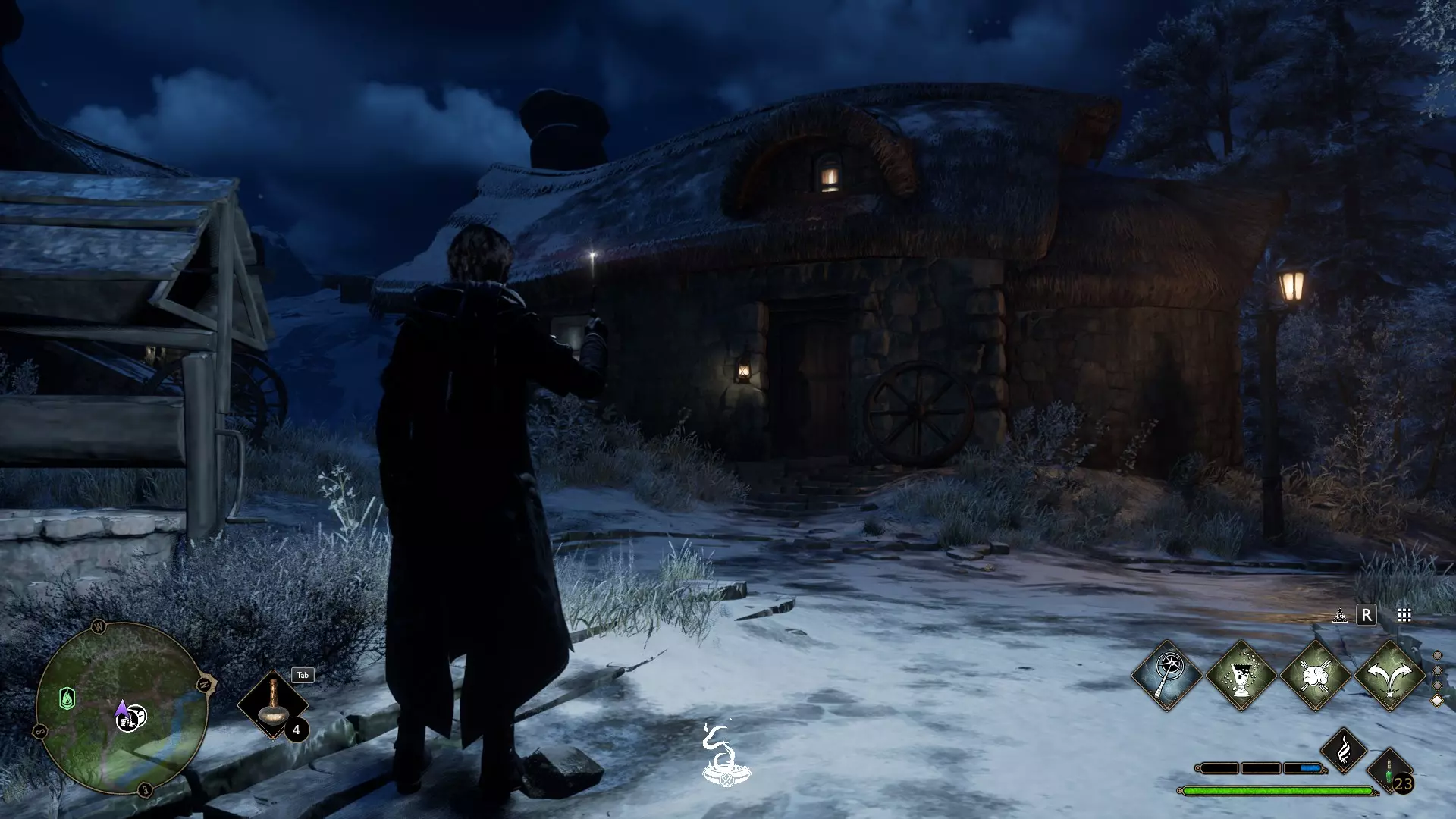 从“三把扫帚”酒馆出来后,沿着右边的路跑,左手边的第一个房子。(2级)