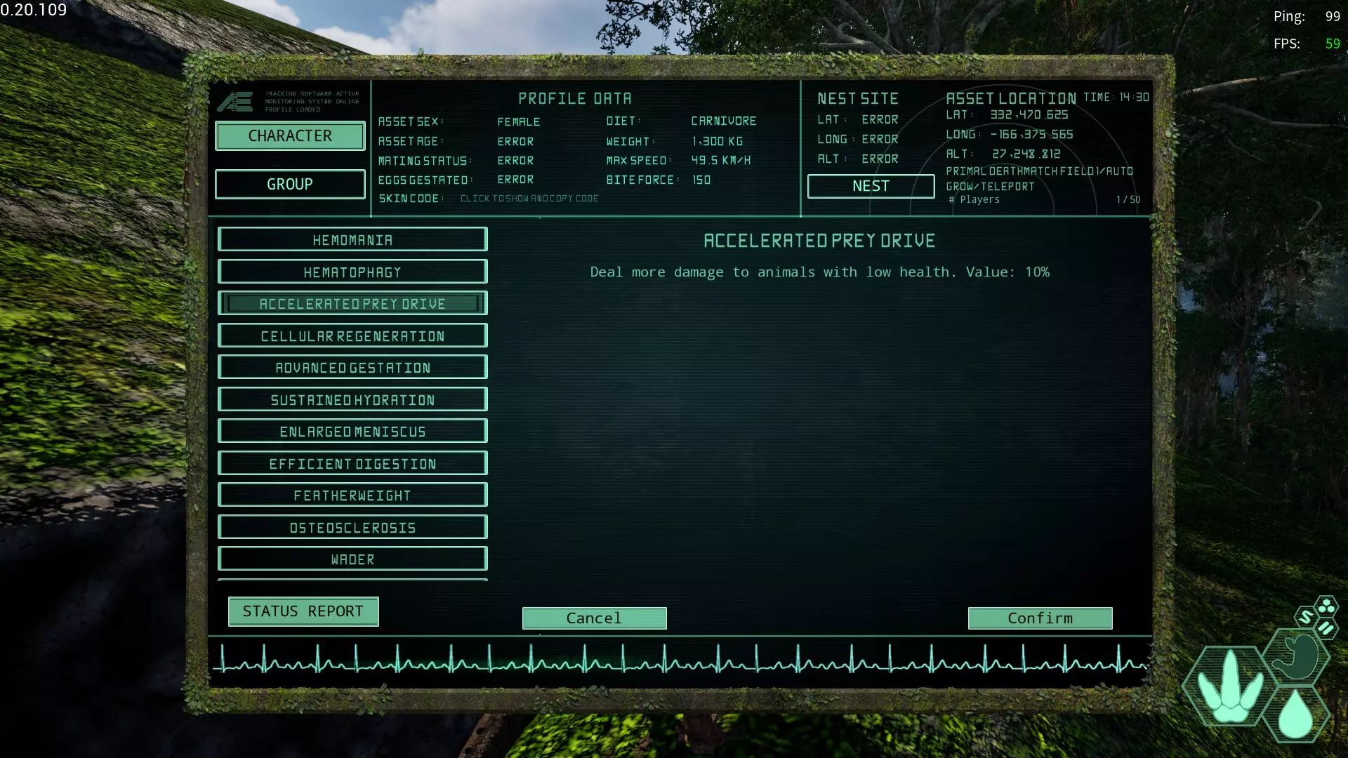 【加速捕食冲动】变异 简称:AP 获取槽位:全部 效果:对低体力生物获得特攻 与角鼻龙和双脊龙相性良好 能减少最终因无法坚持而失败的情况