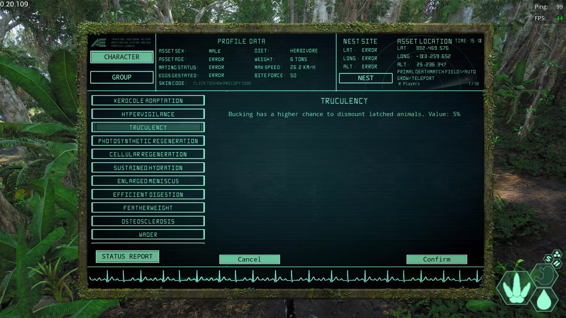 草食及杂食限定变异↓ 以下是草食及杂食生物限定的变异。 这类变异没有特攻类效果,取而代之的是较多战斗辅助类效果。 ☆Truculency/凶暴性增加变异 简称:TL 获取槽位→全部 效果:【增加甩落缠附生物的概率】 对迷惑龙、三角龙等体型较大的生物有效。