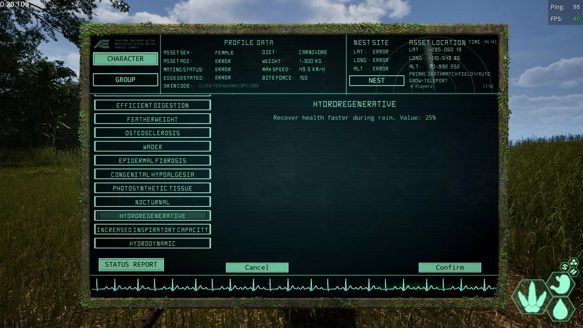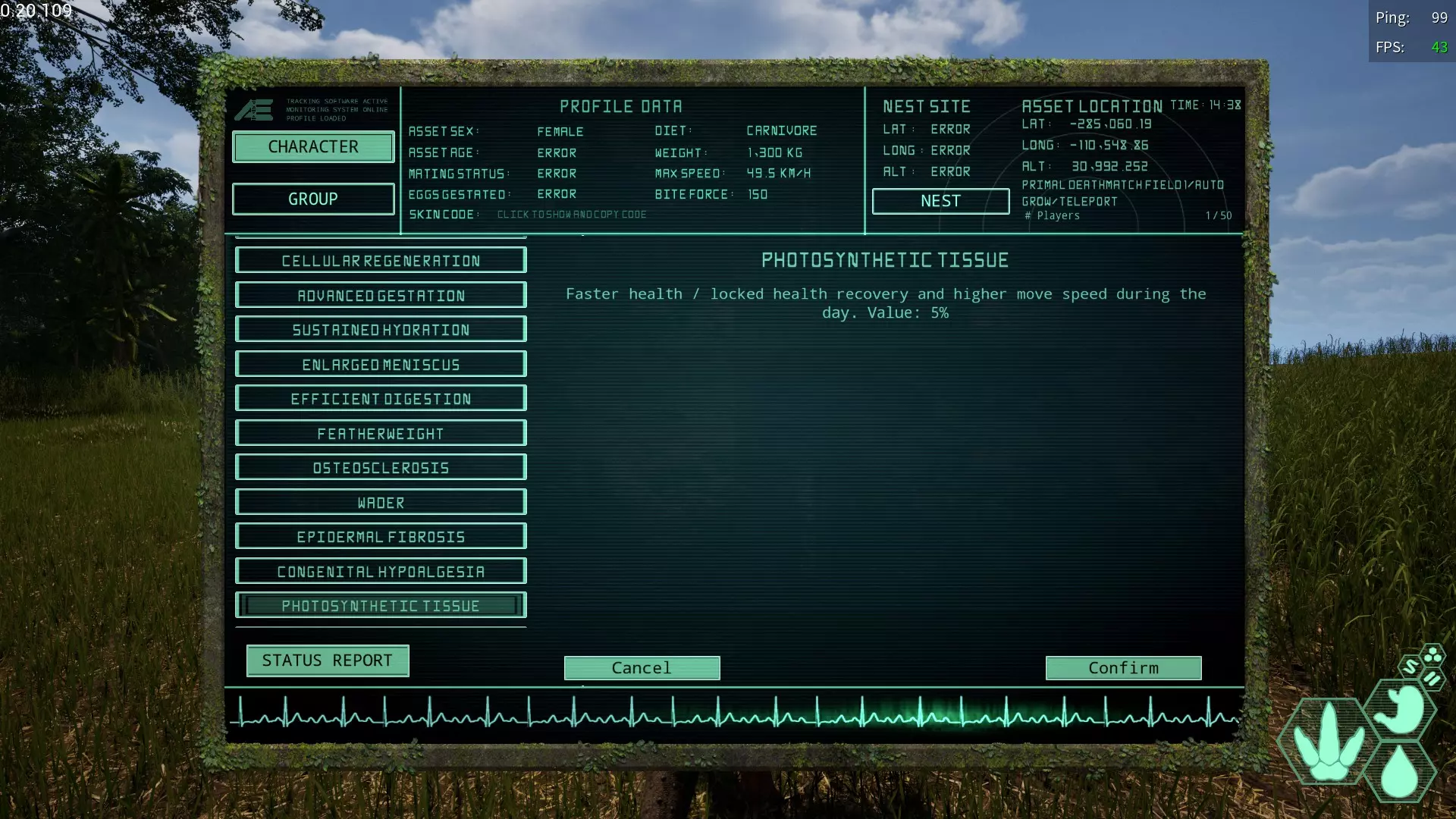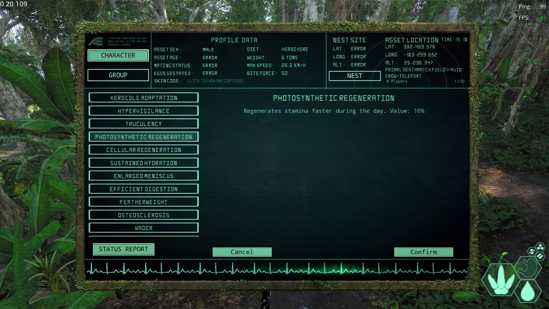 【光合成再生变异】(Photosynthetic Regeneration/光合成再生変異) 简称:PR 获取槽位:全部 效果:“白天的耐力恢复速度上升” 虽然仅限白天,但恢复速度会变得相当快,推荐给耐力消耗大的生物。