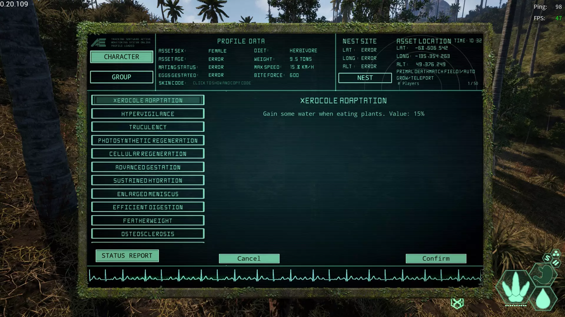 干燥适应变异(Xerocole Adaptation) 简称:XA 获取槽位:全部 效果:食用草时少量恢复水分值 恢复量较少 持久战中或许能派上一些用场?