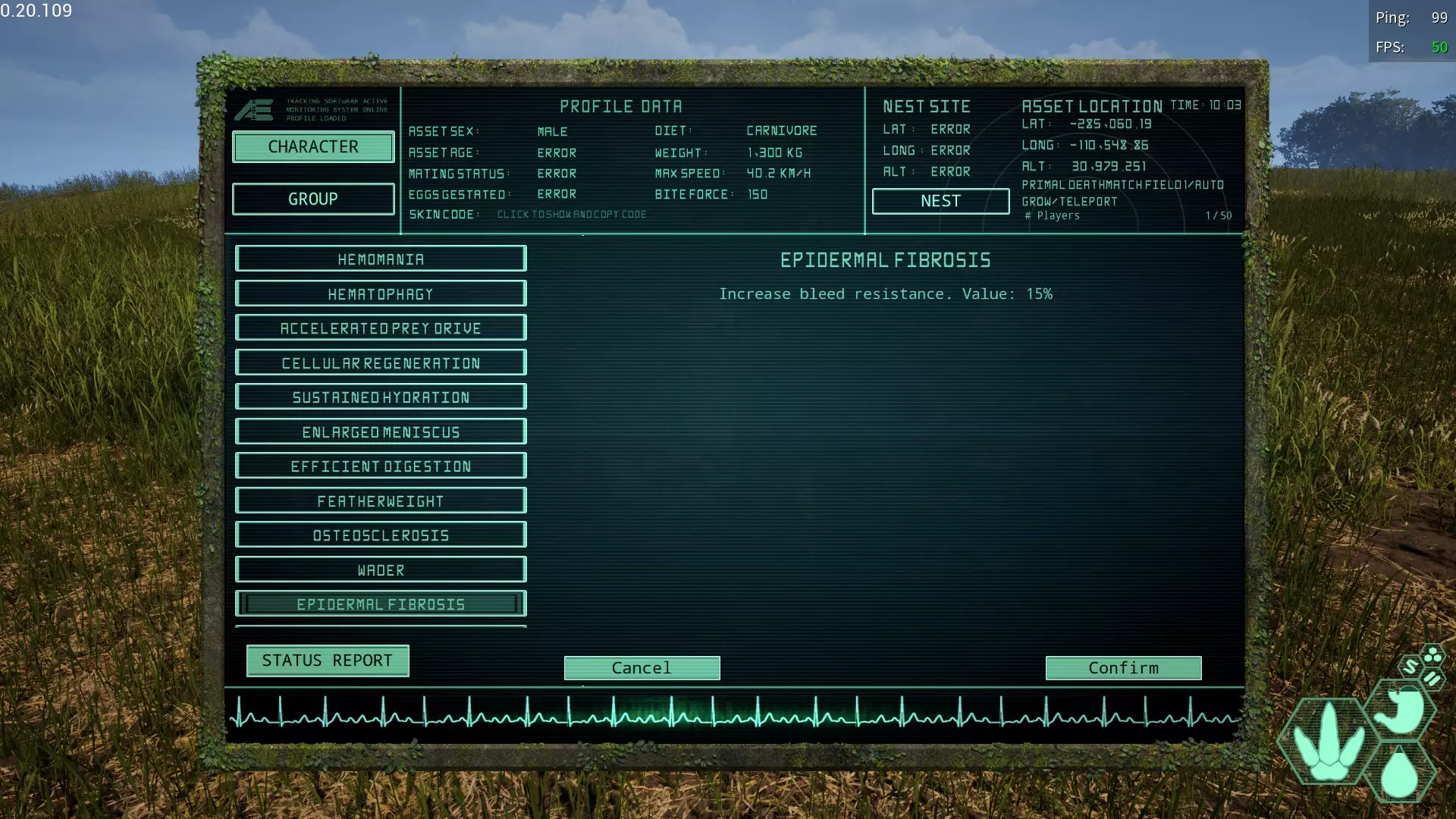 【表皮纤维化】(Epidermal Fibrosis,简称EF) 装备槽位:全部 效果:提高出血耐性 由于许多生物都能造成强力的出血效果,因此该技能对任何生物都是必备的。如果不确定装备哪个技能,优先选择这个准没错。