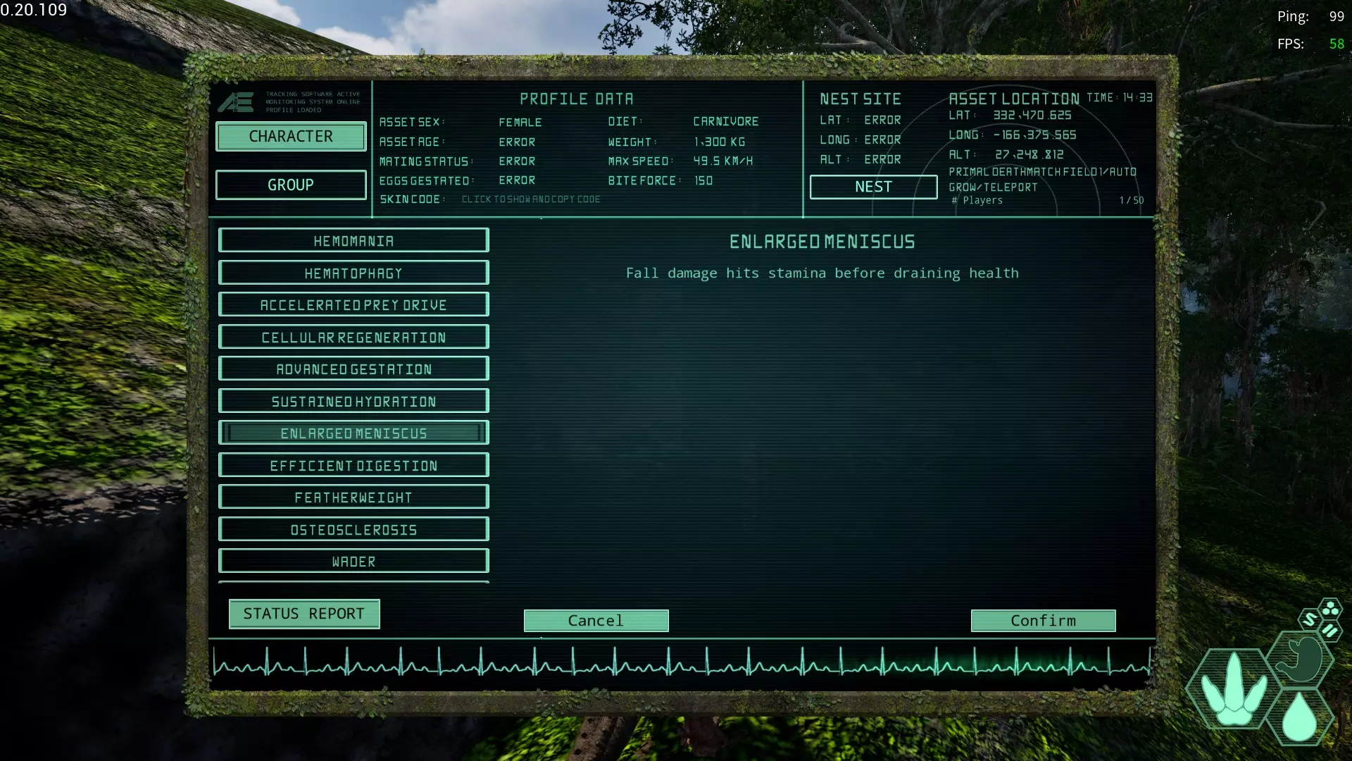 【半月板肥大变异】(Enlarged Meniscus/EM) 获取槽位:全部 效果:消耗耐力抵消坠落伤害 可能适合坠落抗性较低的生物,但耐力不足或坠落高度过高仍会导致死亡,切勿过度依赖。